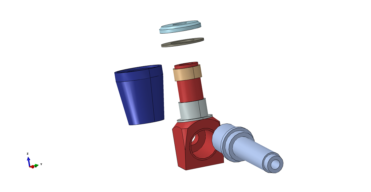 on kuvassa 2. Siinä on liukulaakereita ”ylä-” ja ”alapäässä”. Kantavana ideana on mahdollistaa merkittävä triken leveyden muutos, 790 mm => jotain 700 … 720 mm. Eli ”ohjainlaakerointi” olisi mahdollisimman kapea (Kuva 3). Samalla navan akseli saa hieman lisää jäykkyyttä ja on ehkä karvan verran lyhyempi kuin V1:ssä. Lisäksi ohjainlaakeroinnin kiinnitys olisi tulossa vaakasuoraan runkoputkeen, joka hieman helpottanee rungon tekoa. Selvä haitta on ainakin osittain monimutkaisempi rakenne, siis tarvittavien kikkareiden valmistus. Liukulaakereista ei ole mitään kokemuksia. Mutuna luulisin niiden kantavan kuormitukset ”paremmin” kuin tavallinen 1 1/8 tuuman headsetti.