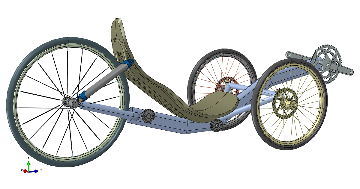 Takaisin asiaan … eli alkuvaiheessa kolmipyörän ja kuskin yhdistelmä oli hyvin suurella todennäköisyydella resonanssissa, eli polkeminen aiheutti voimakasta resonoivaa värähtelyä vähän koko rakenteessa suuremmilla pyöritystaajuuksilla. Kyseistä ominaistaajuutta vastaava värähtelymuoto sisälsi ainakin etupyörien samanvaiheisen rotaation ohjausakselien ympäri. Jotain liikettä esiintyi myös takapäässä eli varsinainen heräte lienee peräisin ”takarenkaalta”. Todennäköinen herättävä voimavaikutus on ketjuvoimien aiheuttama vaihteleva momentti pystyakselin ympäri.