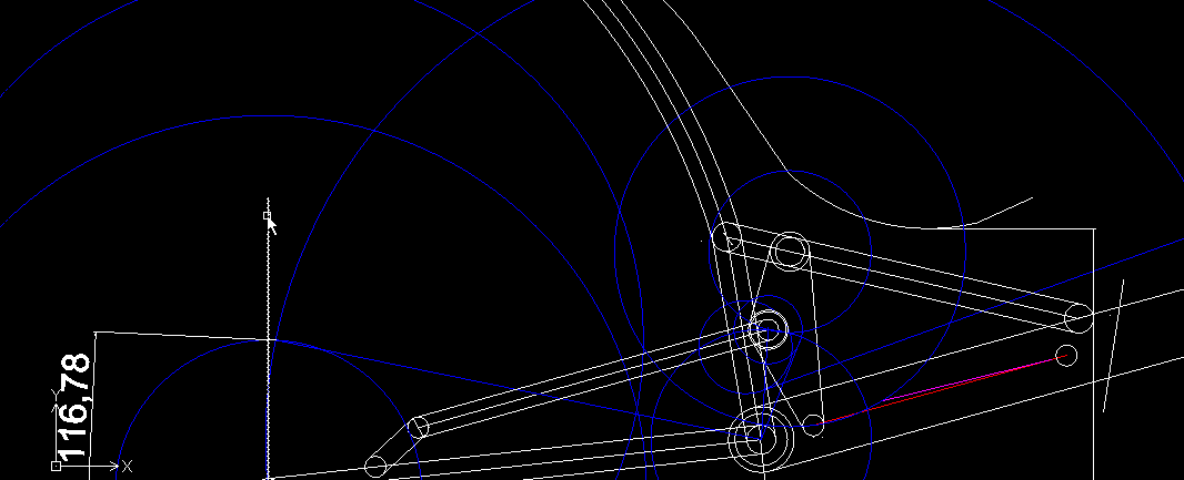 Draftsightilla piirtelyssä ei ole verta ja hikeä säästelty joten oon aika varma että osat myös sopii toisiinsa. 2d cadissa on tietty se huono puoli että poikkileikkauskuvat on aina piirrettävä, jos haluaa olla varma ettei mikään kolise toisiinsa. Hyvä esimerkki on etuhaarukka, näytti ettei mahtumisessa ole mitään ongelmaa. Tein sitten kuitenkin poikkileikkauskuvan polkimista, renkaasta ja kammista ja tajusin että pitää tehdä paljon kapeampi kuin aluksi ajattelin.