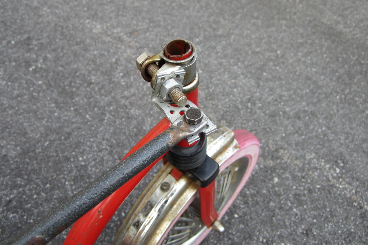 Vanha venäläinen kolmipyörä poljinkeskiön takaa poikki ja 60 cm putkea väliin.