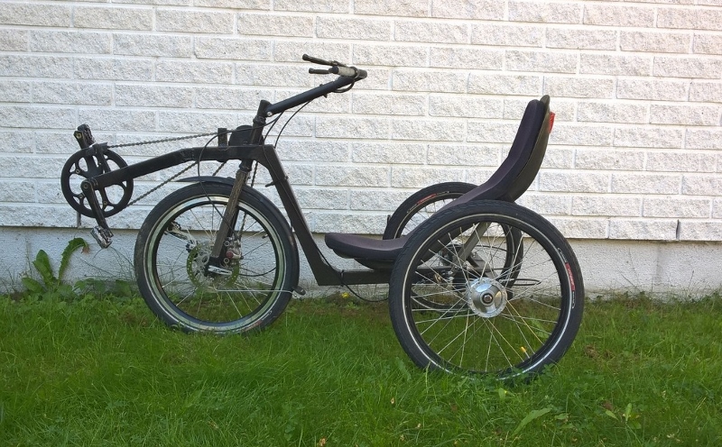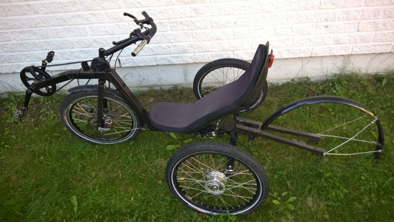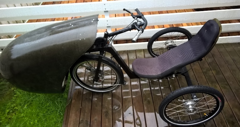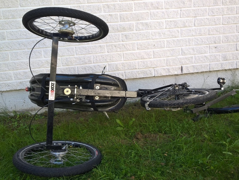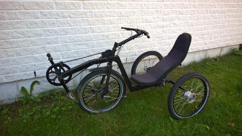 Pyörä on vanhaa etuvetoista ZOX mallia, takaosaa vaihtamalla siitä saa kaksipyöräisen. On käytetyn näköinen, runko on uudelleenmaalattu. Koko voimansiirto on sata km vanha, eli eturatas, 9-vaihteinen pakka, ketju, vaihde, tangonpäävaihdin ja vaijerit ovat uusia. kammet ovat 150mm:ksi lyhennetyt, shimanon MB lukkopolkimet. Renkaina Shcwalbe marathon plus 47mm. Satula hiilikuitu/kevlari.