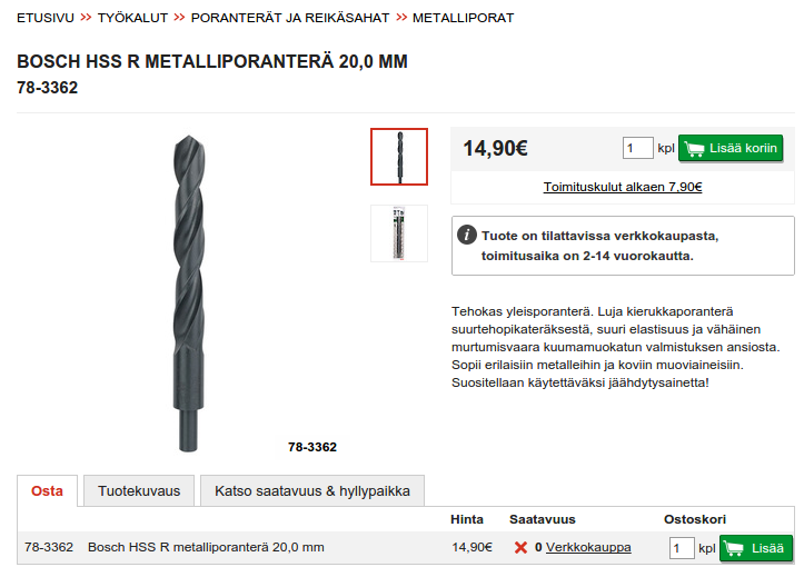 PW kirjoitti:PW kirjoitti:Yrittäny ettii kaupungista 20mm metalliporanterää, ekan liikkeen hintaa 28,-, pelästyin ja menin viereiseen 48,-