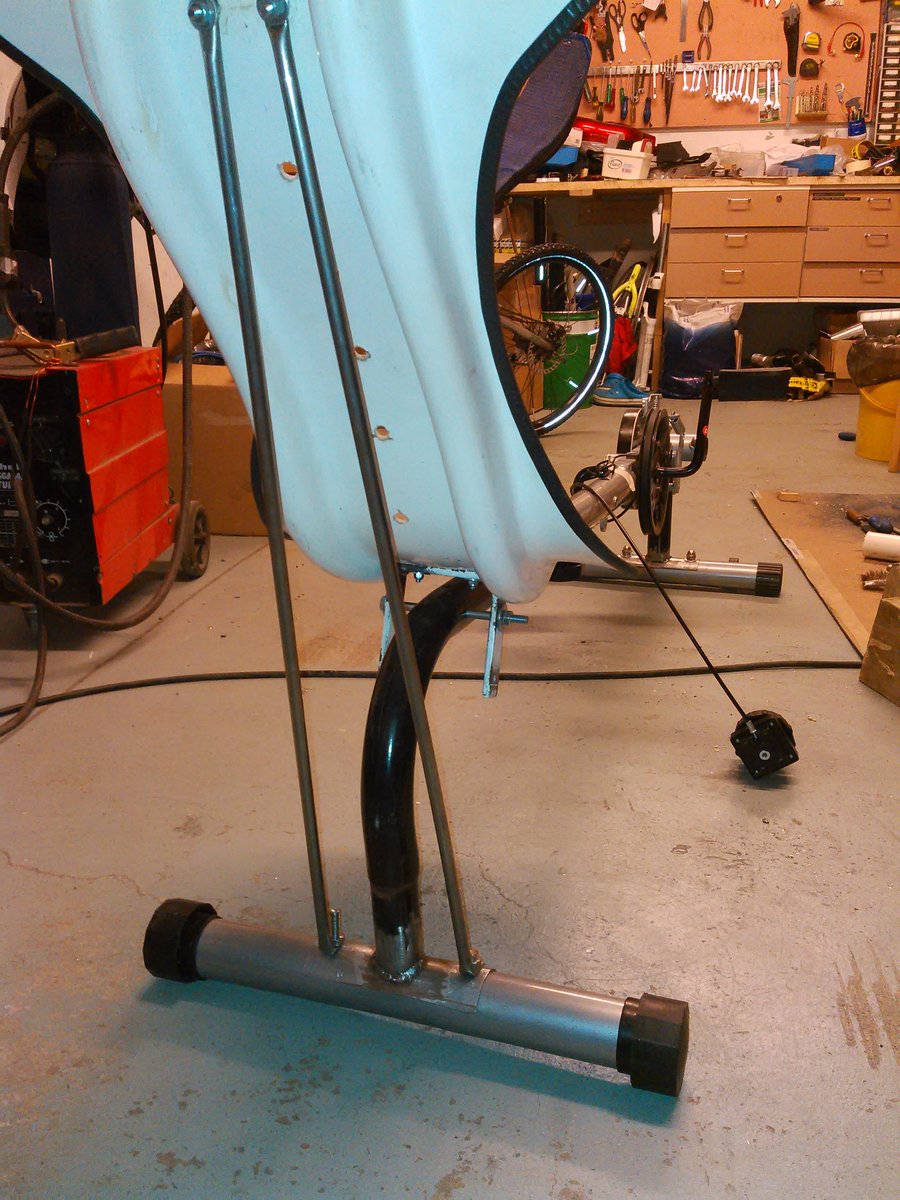 Mistähän tuollaisia saisi? Kas, minulla kun on jo Hobby Hallista neljällä kympillä ostettu Raleighin "nojakuntopyörä", mutta kun sen noja-asento ei ole oikea noja... Eli samantyyppinen rakenne kyllä toimisi siinäkin. Mutta hitsauspeukalo on keskellä kämmentä... Pitäisiköhän kokeilla rakentaa se puusta?