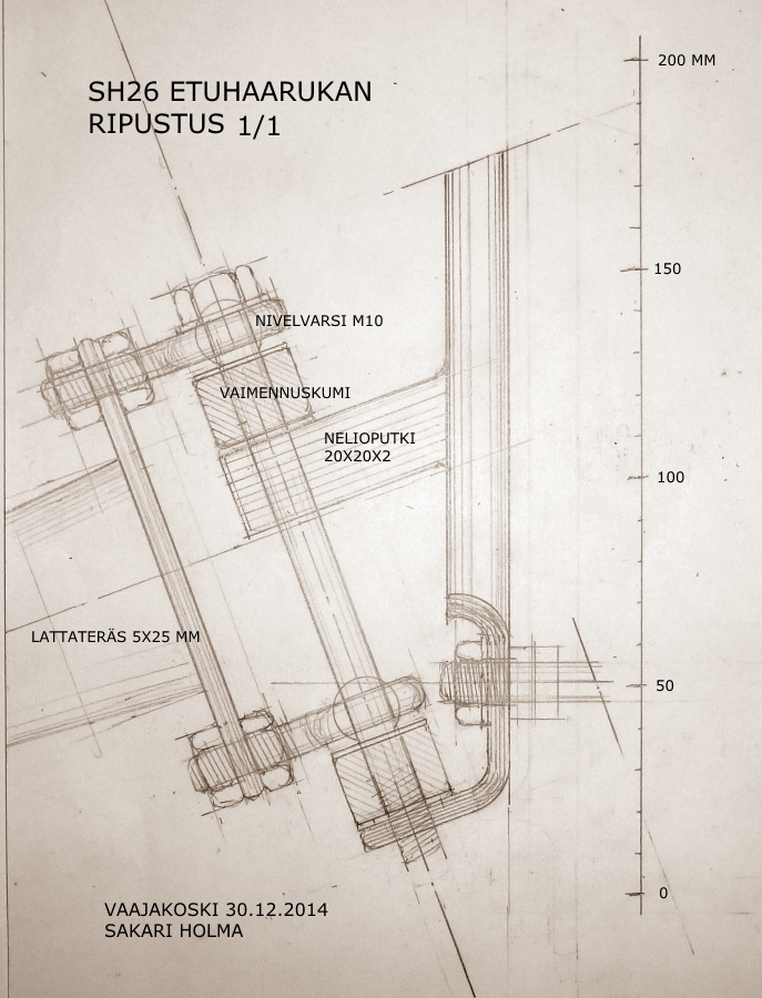 Kokeilin josehan ehdottamaa kohtisuoraa taitettua raidetankoa SH23:ssa, mutta raidetangon nivel-varren laakerointi tuotti ongelmia. En saanut sitä riittävän tukevaksi.