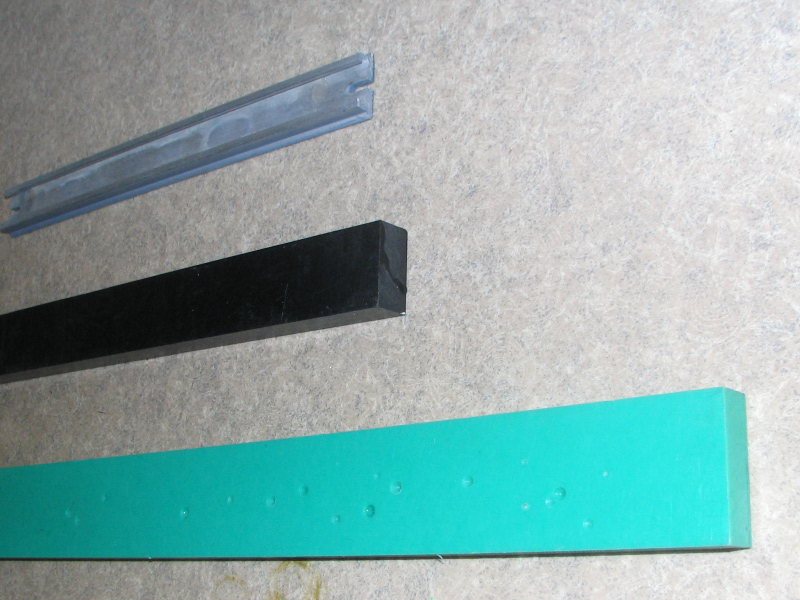 Ohjauslaakerin sorvasin polyeteenistä ja siihen 12mm pultti. Se on aika tukeva, joten yksi raidetanko varmaan riittäisi?