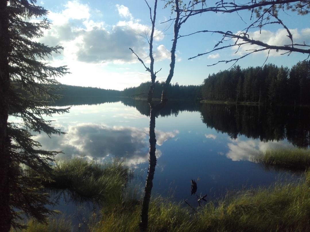 Jos jossainpäin Suomea kukot toimii herätyskellona niin täällä ne on joutsenet :) kuulema kuuden aikaan tuuttasivat, Saila koitti niitä käydä kuikuilemassa. Itse pariin otteeseen heräsin joutsenten ääniin mutta käänsin kylkeä, totesinpa vain, että jo kaikuu ääni hyvin kun muuten on hiljaista. Yhdeksän hujakoilla tikka naputti läheisessä lahopuussa ja vähän sen jälkeen kiipesin ylös ihmettelemään aurinkoista aamua.