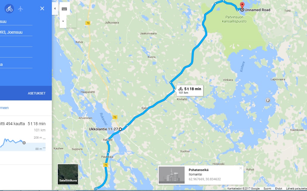 Vikan evästaukopaikan takia kannatti jo tehdä u-käännös (15km ennen Patvinsuota)