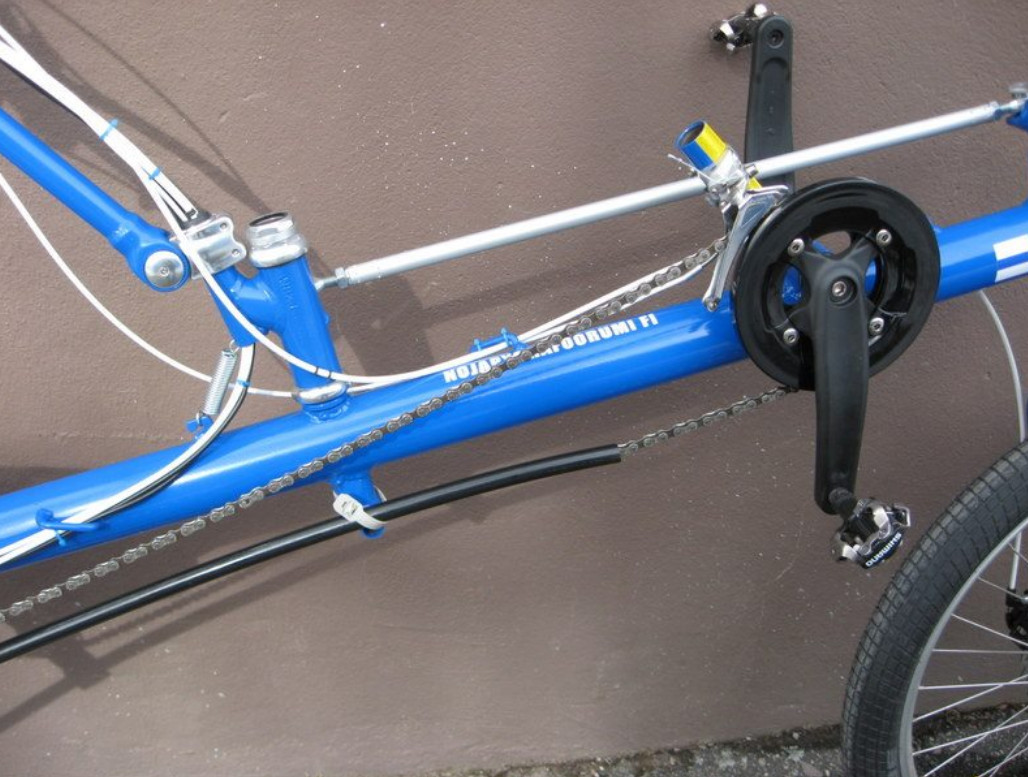 On siisti. Painoa taitaa olla jonnin verran mutta hyvin olet ratkaissut takajousituksen ja ketjun linjauksen, ei pitäisi pahemmin pomppia perä ylämäkeen vääntäessä...