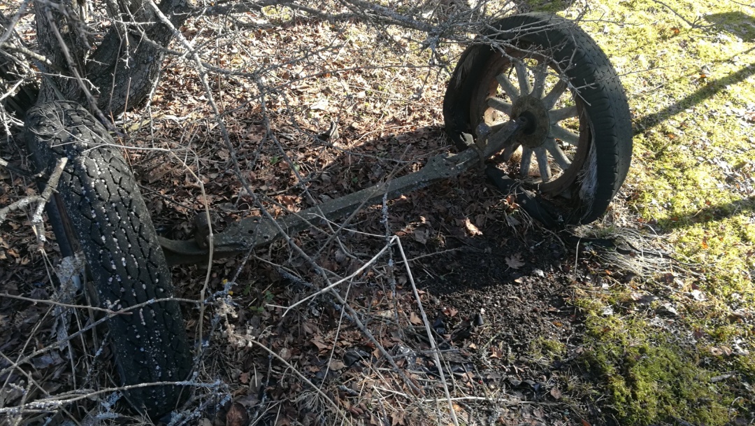 Autonakselilta näyttäs, lojunu tuos pihassa vuosia, joskus aatellu jos siitä tuunais penkin mutt jääny. Navassa näkyy heikosti logo, tunnistaako kukaan?
