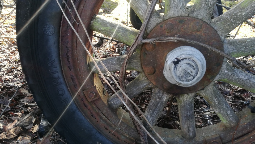 Puupuolat vanteissa. Oisko vuoden 1920 paikkeilta?