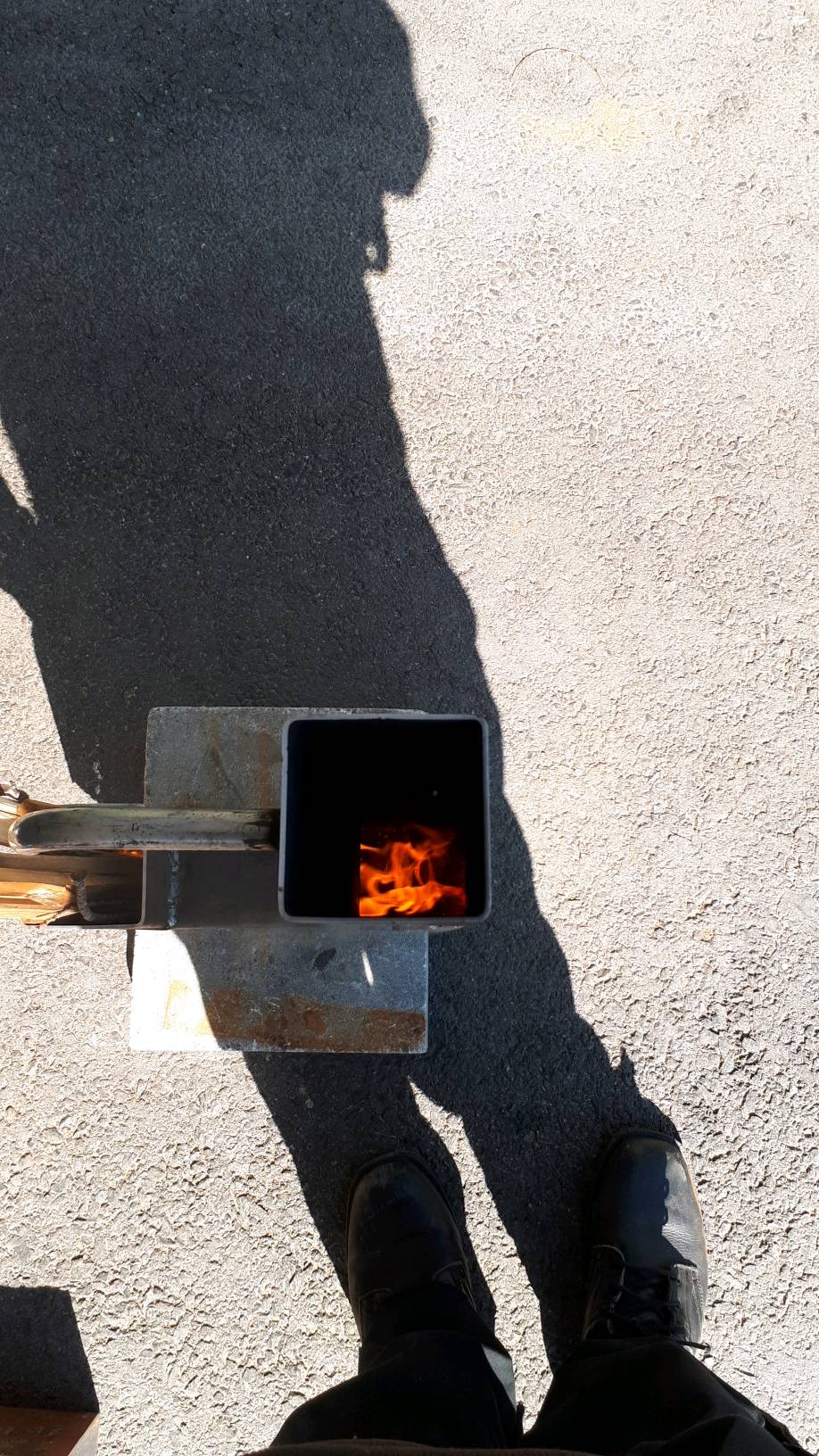 Tein kokeeksi rakettiuunin. Puut palaa kuvassa, mutta ei savua.