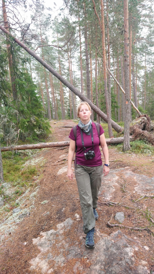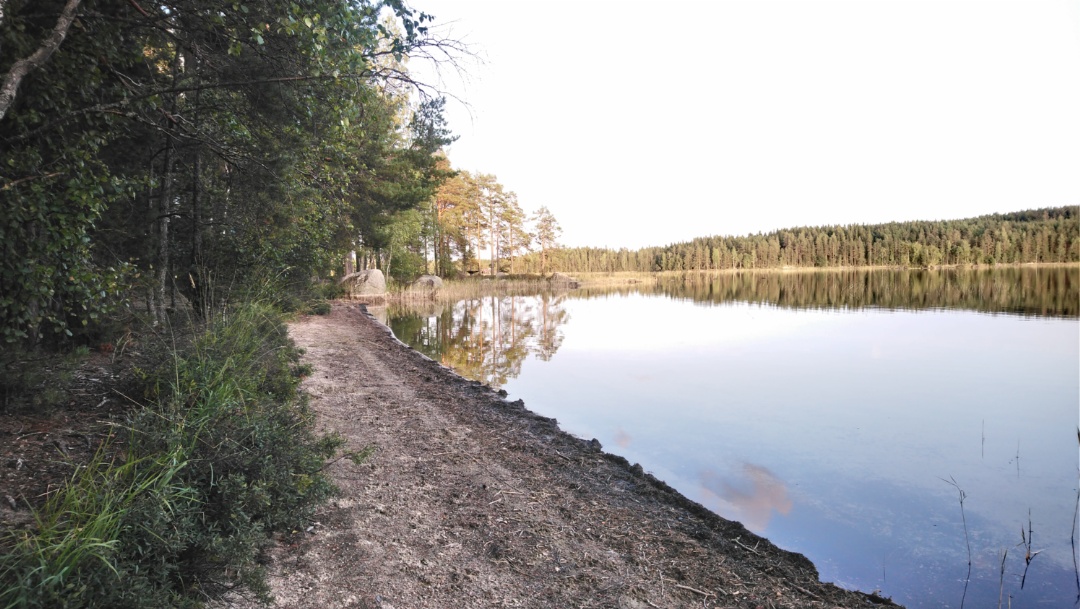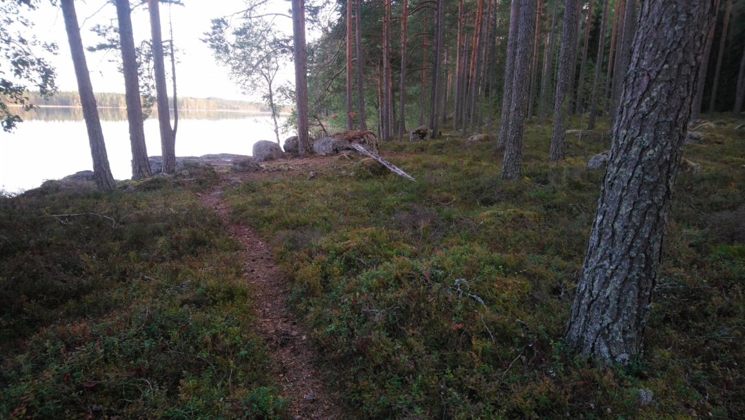 Lopussa oli kivikkoisempaa ja hitaampaa polkua. Jossain niemennokassa oli paikallinen yrittäjä joka metsähallituksen laskuun oli purkamassa laittomia nuotiopaikkoja, tuohon paikkaan tulenteon kieltävät taulut oli vielä tulollaan, toisaalta semmoinen paikka, että voisi vaikka virallisen paikan laittaa jos nuo muut ruuhkaisia ovat, mitä varmaan sesonkina ovat.