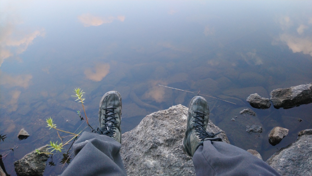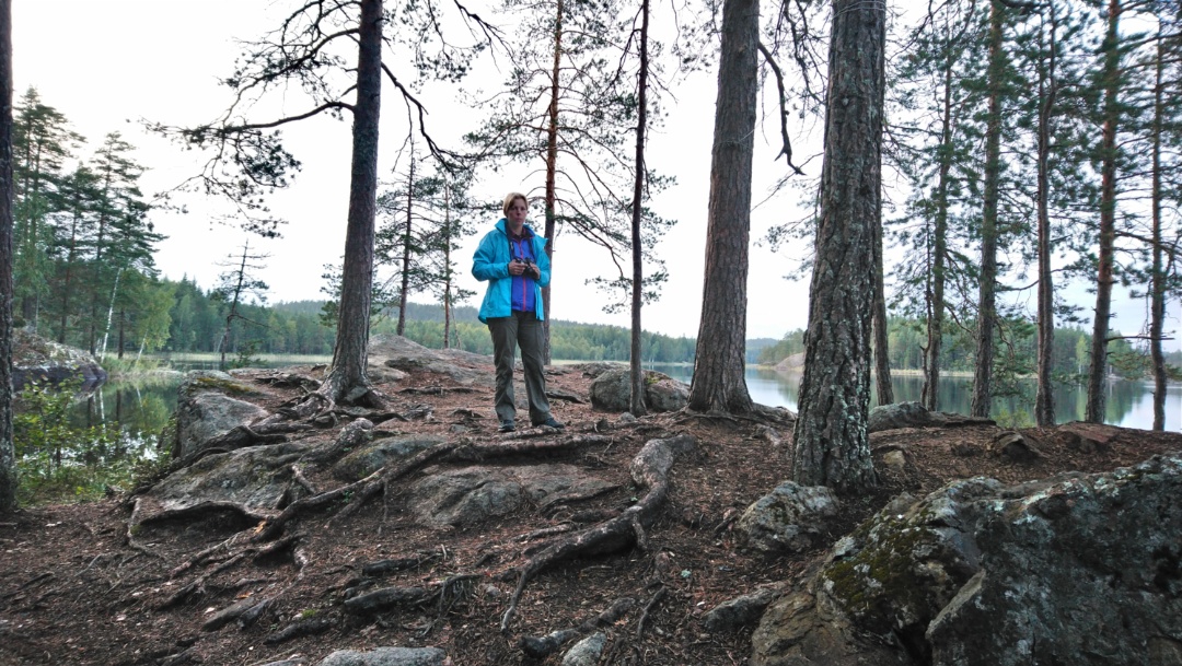Kävin pyörästä vielä sadekamppeet leiriin ja paljasjalkakengät niin läksin lyhyelle käppäilykierrokselle lähiniemeen, hyvät istumakivet vedenäärestä löysin niin istuskelin tovin.