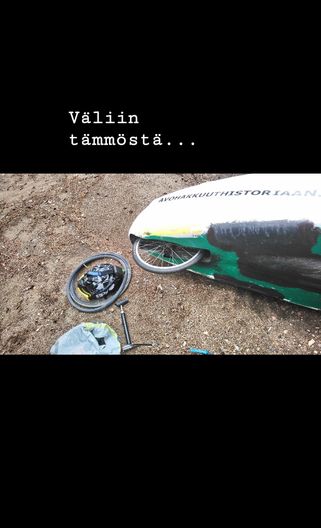 Pumpata koitin mutta jossain vaiheessa muljahti pumppu alta, jotain hajosi ja se rupesi valskaamaan ilmaa läpi, samasta pumpun ratkeamasta tyhjeni se rengaskin.