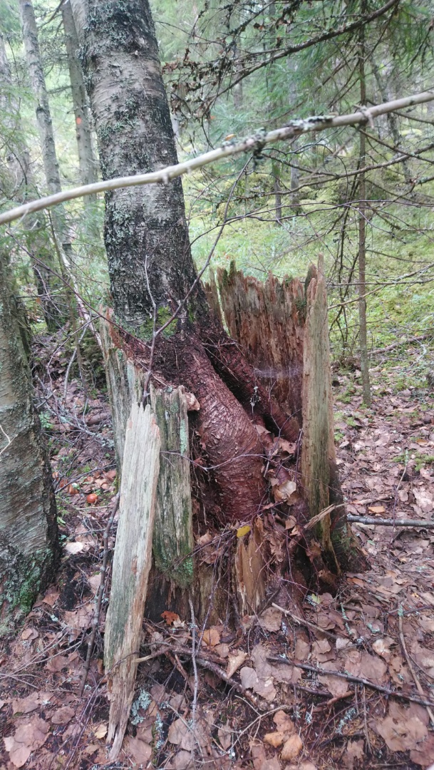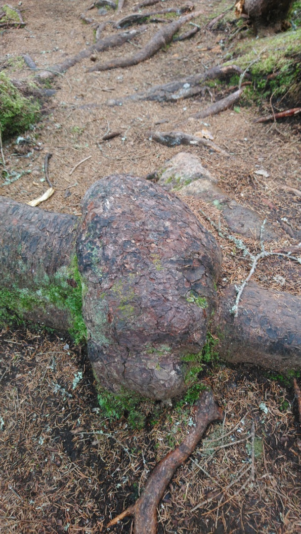 Siinä reitille mennessä huomasin hiisien varoituksena jätetyn jonkun onnettoman retkeilijän pääkallon, Hiisillä on tapana sylkeä kalloon ja puut sen jälkeen aika nopeasti peittävät kallon juurellaan mutta selvästi silmäkuopat, nenä ja suu erottuu, kuka onneton lienee? visusti olisin poissa pysynyt jos olisin tiennyt mutta tulin väärästä suunnasta.