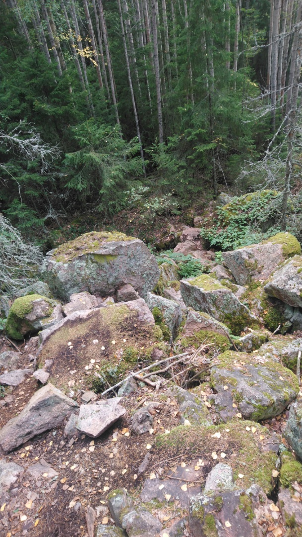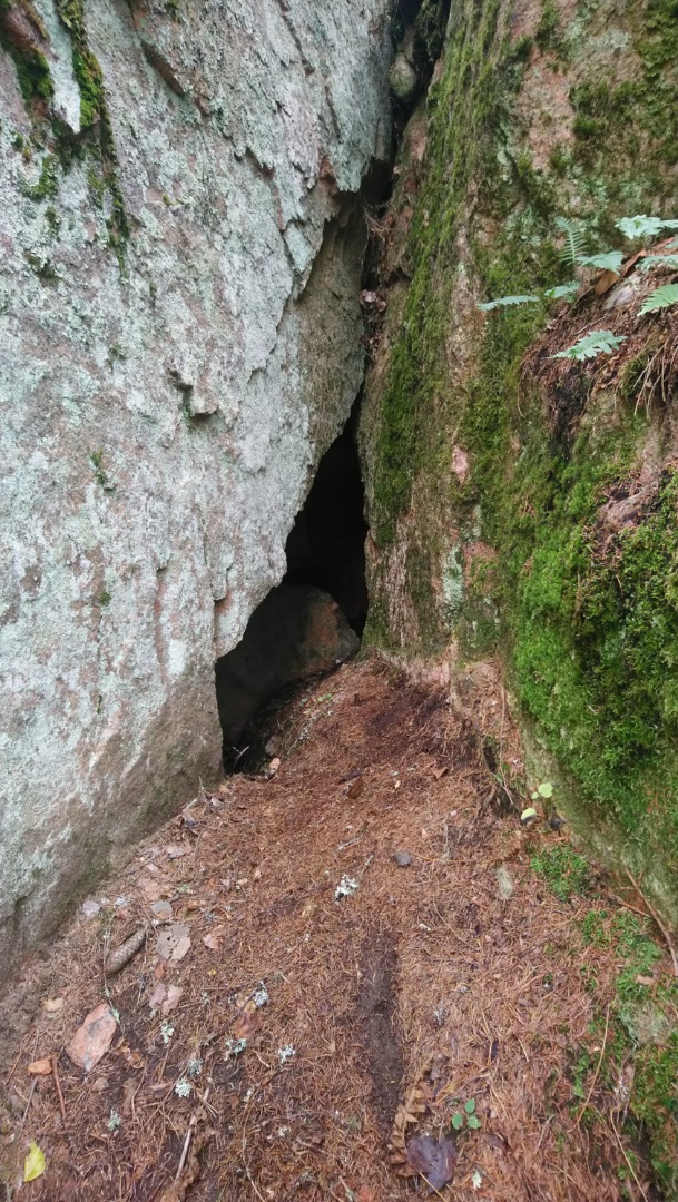 Jossain kalliolla oli luolan suuaukko, ahdas sellainen mutta pujottauduin sisään, oli luolakin pieni ja kuvasin muistoksi mutta kun kuvaa vilkaisin niin tajusin hiidenkoloon eksyneeni, parit silmäparit kuvasta loisti.