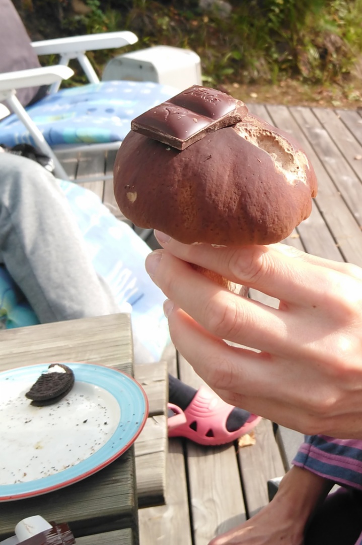 Väliin kävin sienestämässä, jos ei muksuille putoa sienet niin tuommoinen suklaatatti putoaa varmasti :)