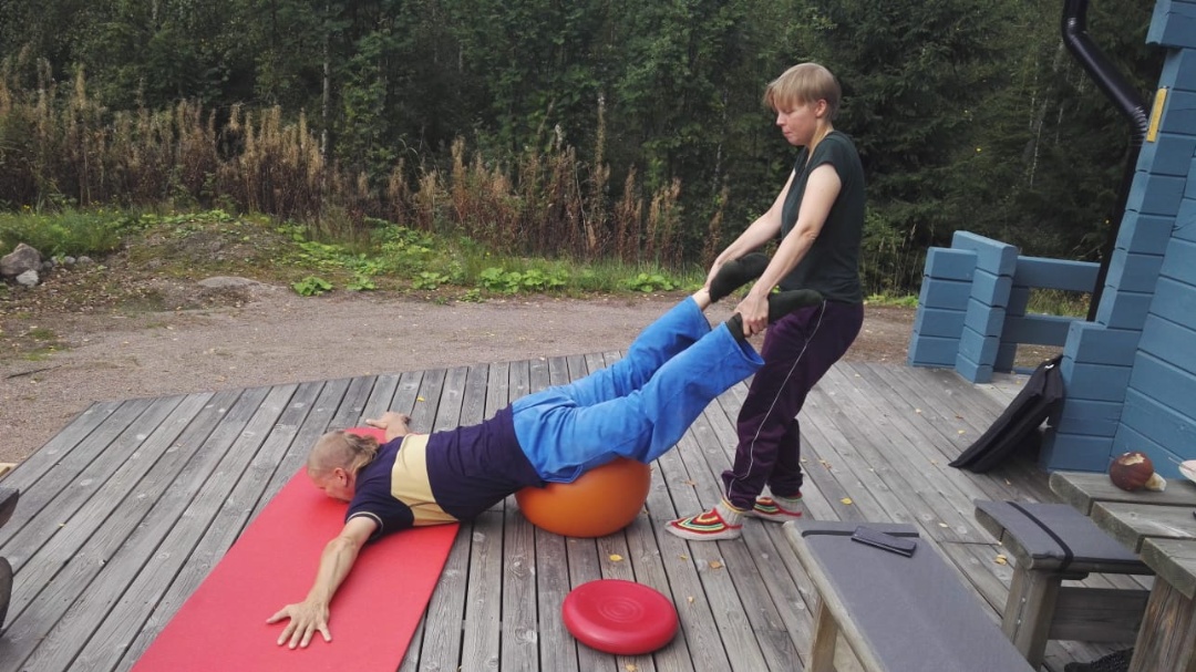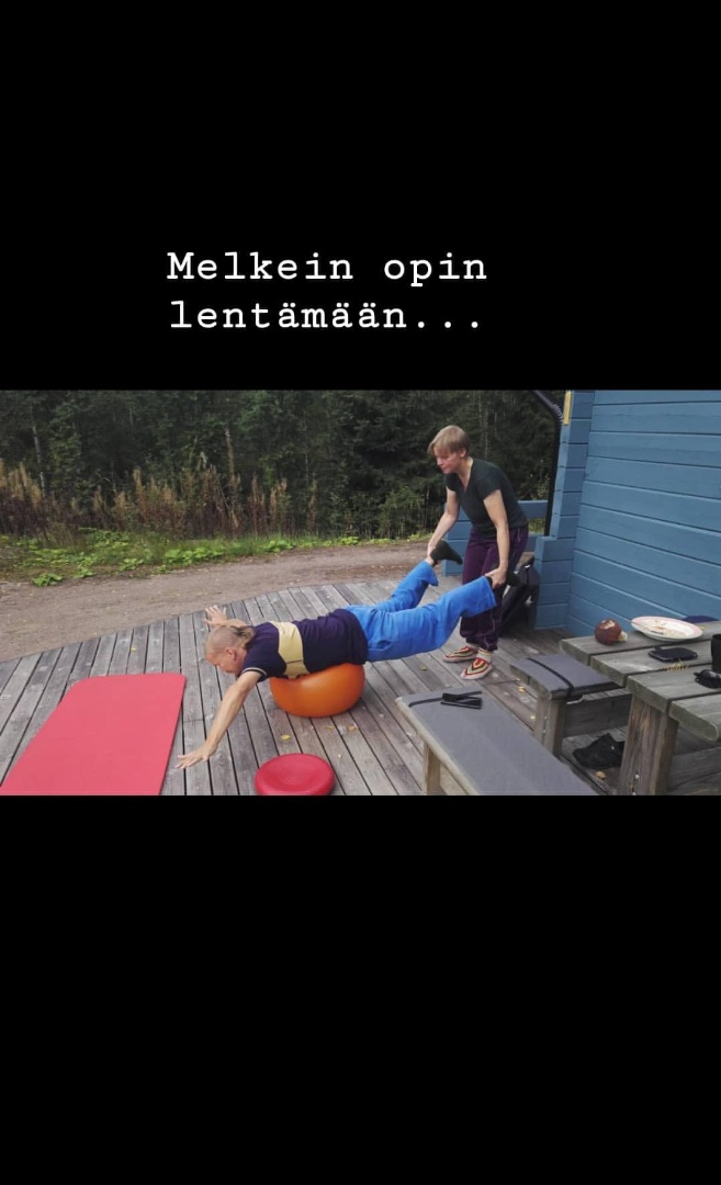 Kunto-ohjaaja on drinkkinsä ansainnut, pari liikettä opeteltu lisää omaan ohjelmaan.