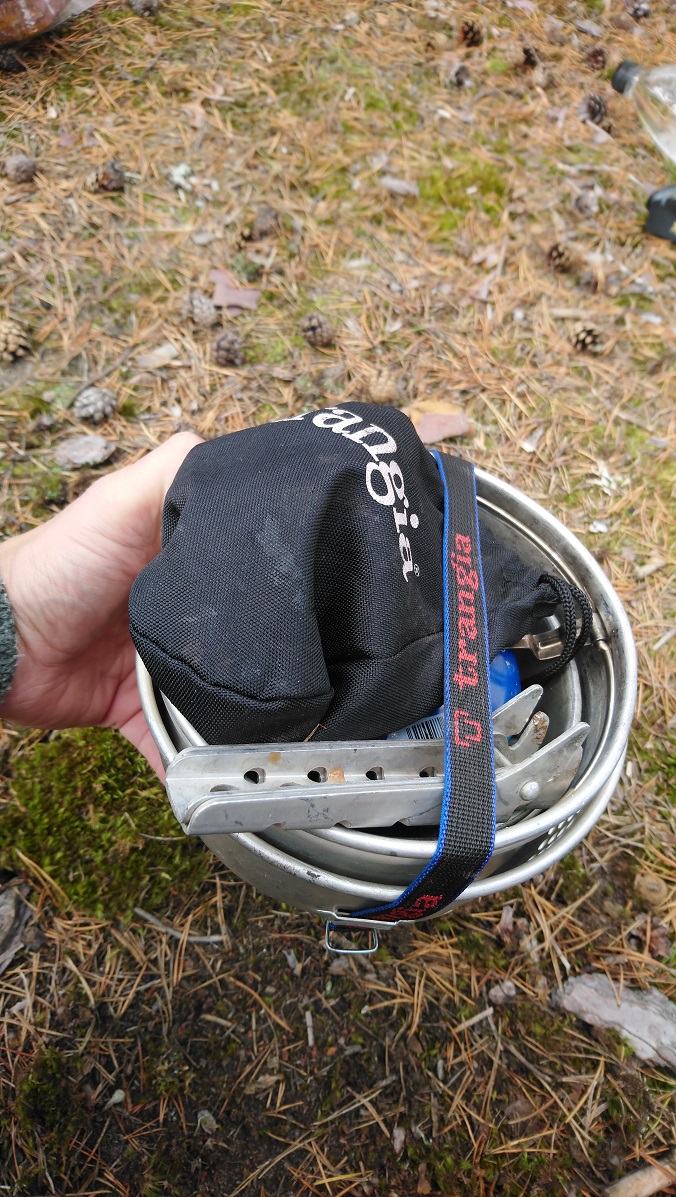 Ihan kiva, mutta jo tuo kattila painaa enemmän kuin koko Mini-Trangia sillä painavalla polttimella.