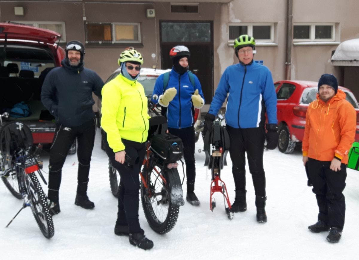 Olipa aivan mahtava ja sinnikäs porukka vierailulla. Vaikka tiet olivat osin auraamatta, ajoi koko porukka paikoin umpihankisenkin lenkin läpi. Upeita hallittuja kaatumisiakin näkyi. Hattua nostan korkealle. Ilman sähköavustusta minä en olisi päässyt alkua pitemmälle. :mrgreen:
