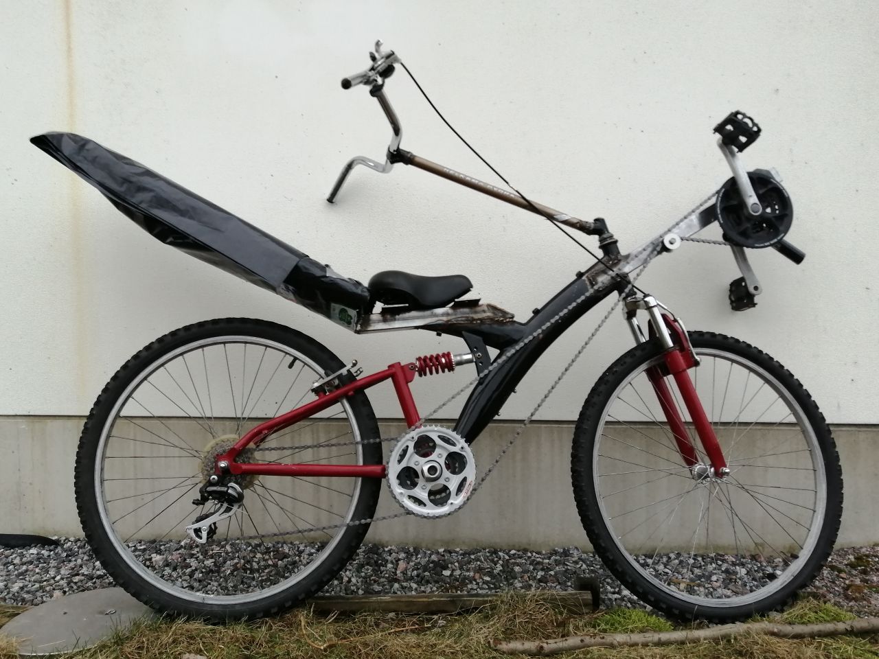 Viimein viestiketju tästä ensimmäisestä nojapyörästäni: pyörä on jotenkuten ajettavissa (yhdellä vaihteella), ja muutaman kymmentä kilometriä olen sillä mennyt, esimerkiksi pääkaupunkiseudun nojapyöräilijöiden saunailtaan. Ajoasento on mukava, niskatuelle ei vielä ole tuntunut olevan tarvetta (suunnitelmissa se kuitenkin on) ja istuinkorkeus ei tunnu olevan yhtään liian ylhäällä. Pyörän päältä näkee liikenteessä hyvin.