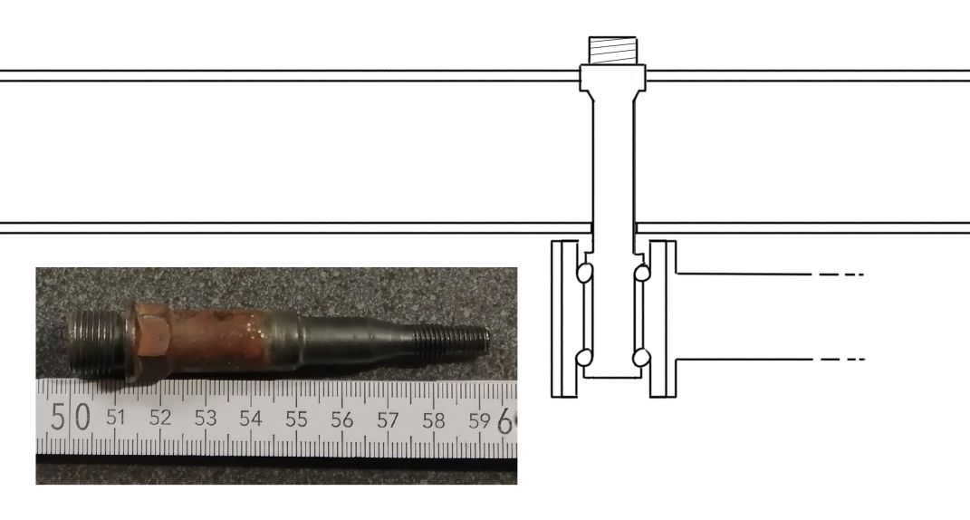 Näppärä ratkaisu. Tila tuossa palkin alla on vain hyvin rajallinen (n. 7cm). Polkimen akselilla on pituutta melkein 10cm, joten osa pitäisi upottaa palkin sisään suunnilleen kuvan mukaisesti. Akseli taitaa tosiaan olla kovaa materiaalia. Kannattaakohan yrittää kiinnittää sitä mitenkään muuten kuin sen omista kampeen menevistä kierteistä?
