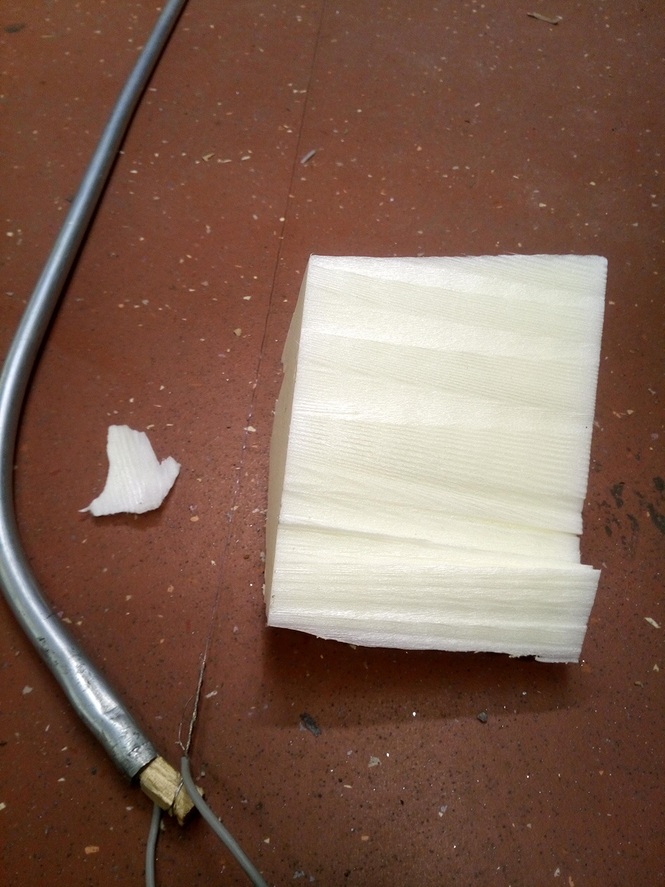 Mutta, kaaret höyläsin n. 5mm levyiseksi, oli pienempi pinta hioa sileäksi. Sitten lanka kuumaksi ja testipalan kimppuun. Rauhallisesti kun vedin niin toinen lanka kesti.