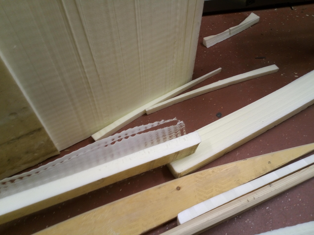 Työkaverilta löytyi 10cm paksua levyä useampi kappale, pääsee harjoittelemaan muotoilua. Esikuvaa on tulostettu paperille, josta saadaan kaarevuudet mitattua tarpeeksi lähelle.