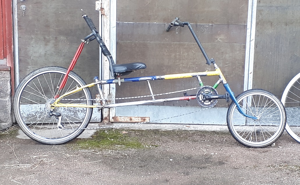 Kun vaan olisin tehnyt siitä silloin 10 senttiä pitemmän. Olisi ehkä jäänyt myymättä. Oli tosiaan kiva ajella, etenkin soralla. Mun pituiselle (190) akseliväliksi laittaisin nyt isoilla pyörillä noin 190 cm ja 406 etupyörällä 180.