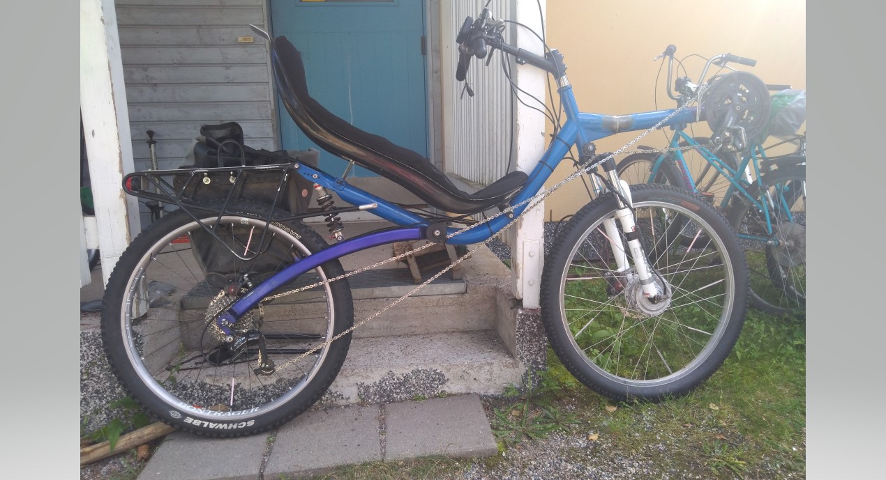 Pyörä on vanha, paljon ajettu, hieman nuhjuinen paikoin mutta teknisesti kunnossa poislukien mainitut korjauskohteet joita korjailen kunhan ehdin. Pyörä on koeajettavissa Lahden seudulla, mahtuu farmariautoon kiekkoja irroittamatta joten suht helppo kuljettaa.