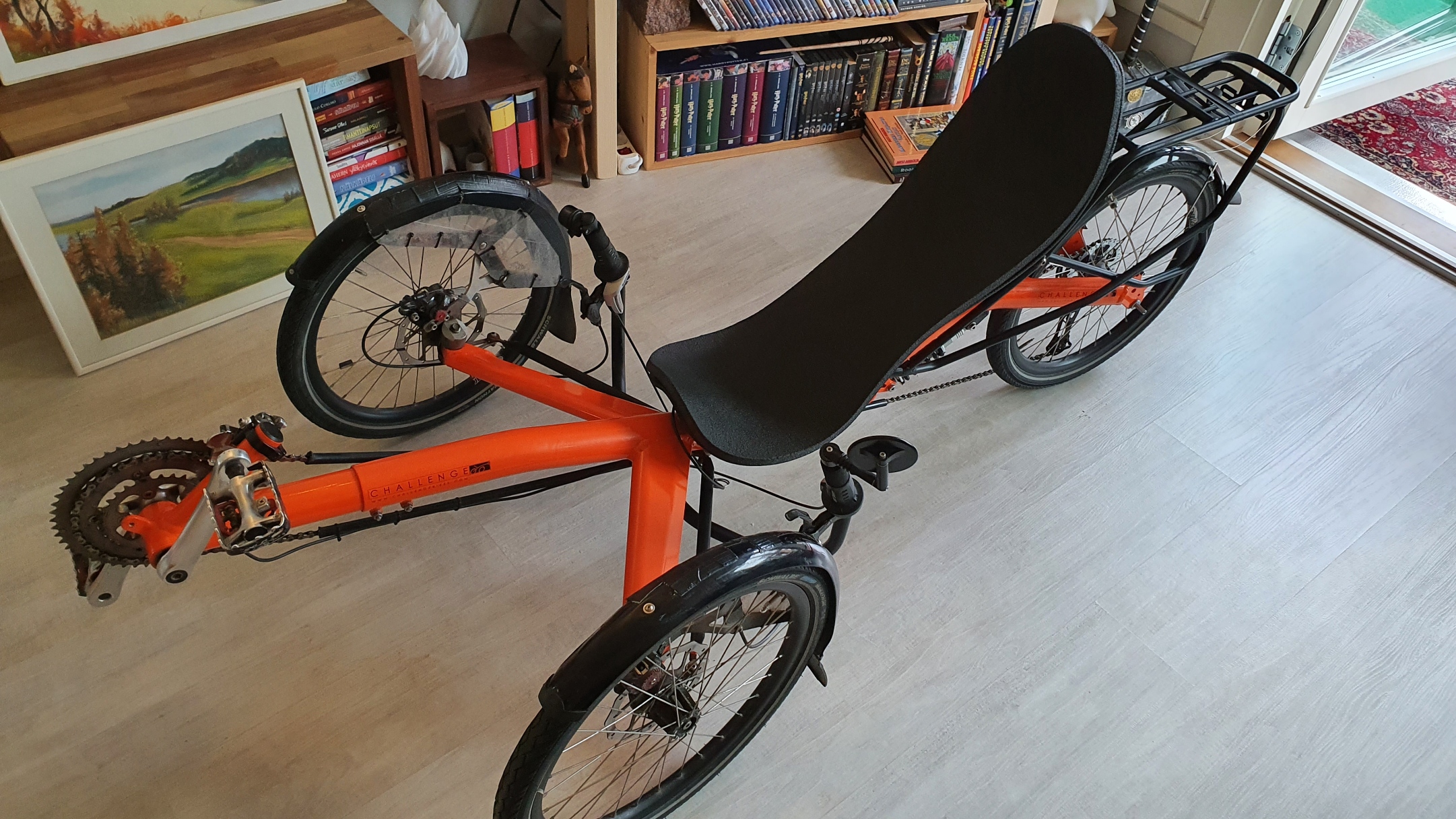 Hyväkuntoinen ja huollettu trike. Vähälle käytölle jäänyt, eikä sovi hyvin nykyiseen asuntoon niin myydään nyt parempaan käyttöön. Tuolta tarkempia tietoja http://www.challengebikes.com/alize24_detail.php. Pyörä on taittomallia ja takana jousitus. Edessä mekaaniset avid-bb7 levyjarrut. Tervetuloa kokeilemaan. Pyörä löytyy Helsingistä (Toukola)