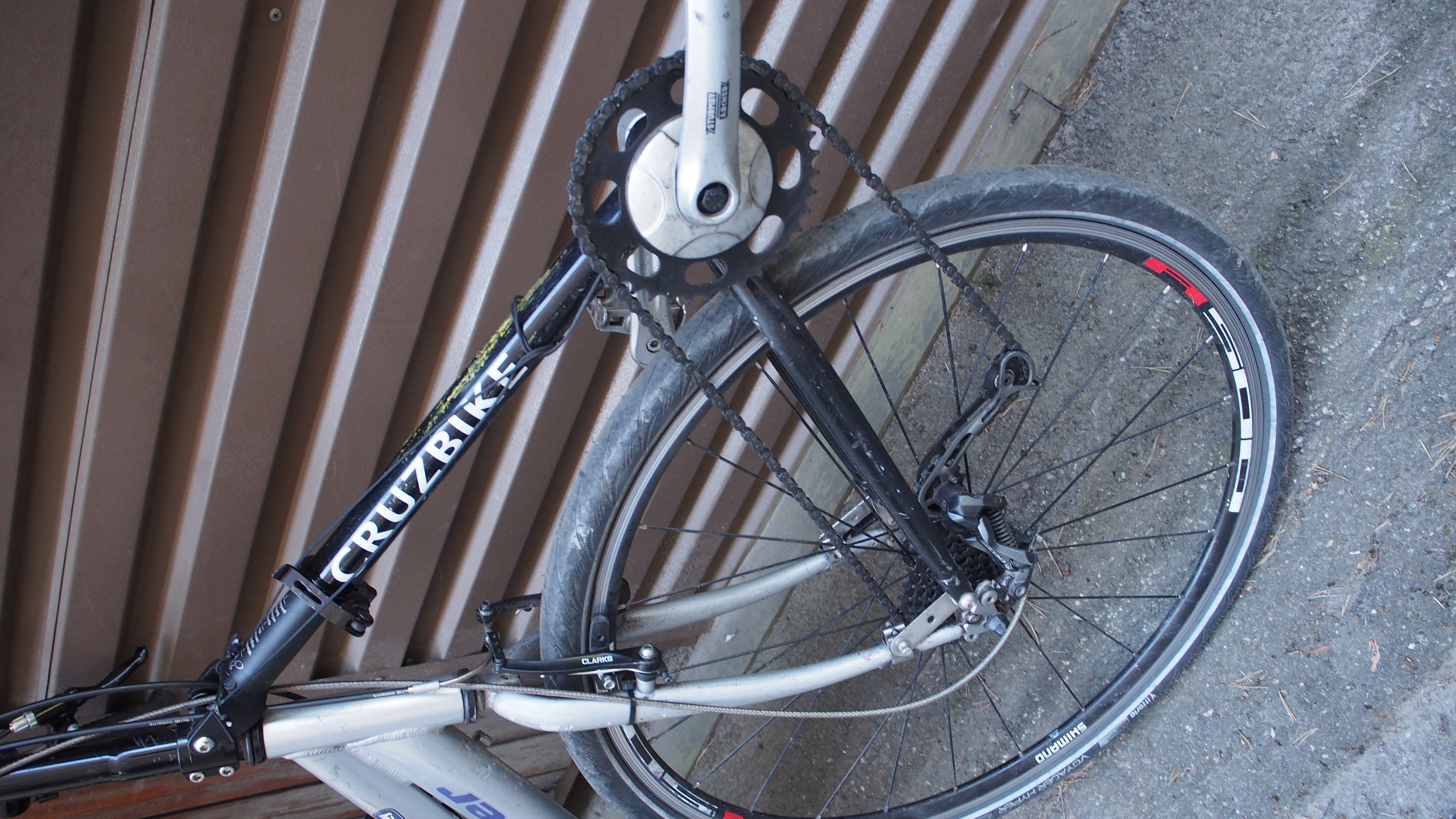 Kunto muuten hyvä, mutta poljinkolmion maalipinta on naarmuuntunut (ks. kuva). Lisäksi vaihteista toimivat tämän polkimien etäisyydellä vain 6 kevyintä ratasta, tämä voi tosin muuttua jos polkimia siirtää lähemmäs penkkiä. Vaihteiden säädöt ovat myös tällä hetkellä pois kohdaltaan, joten pyörä vaatii huoltoa/osaavaa säätäjää.