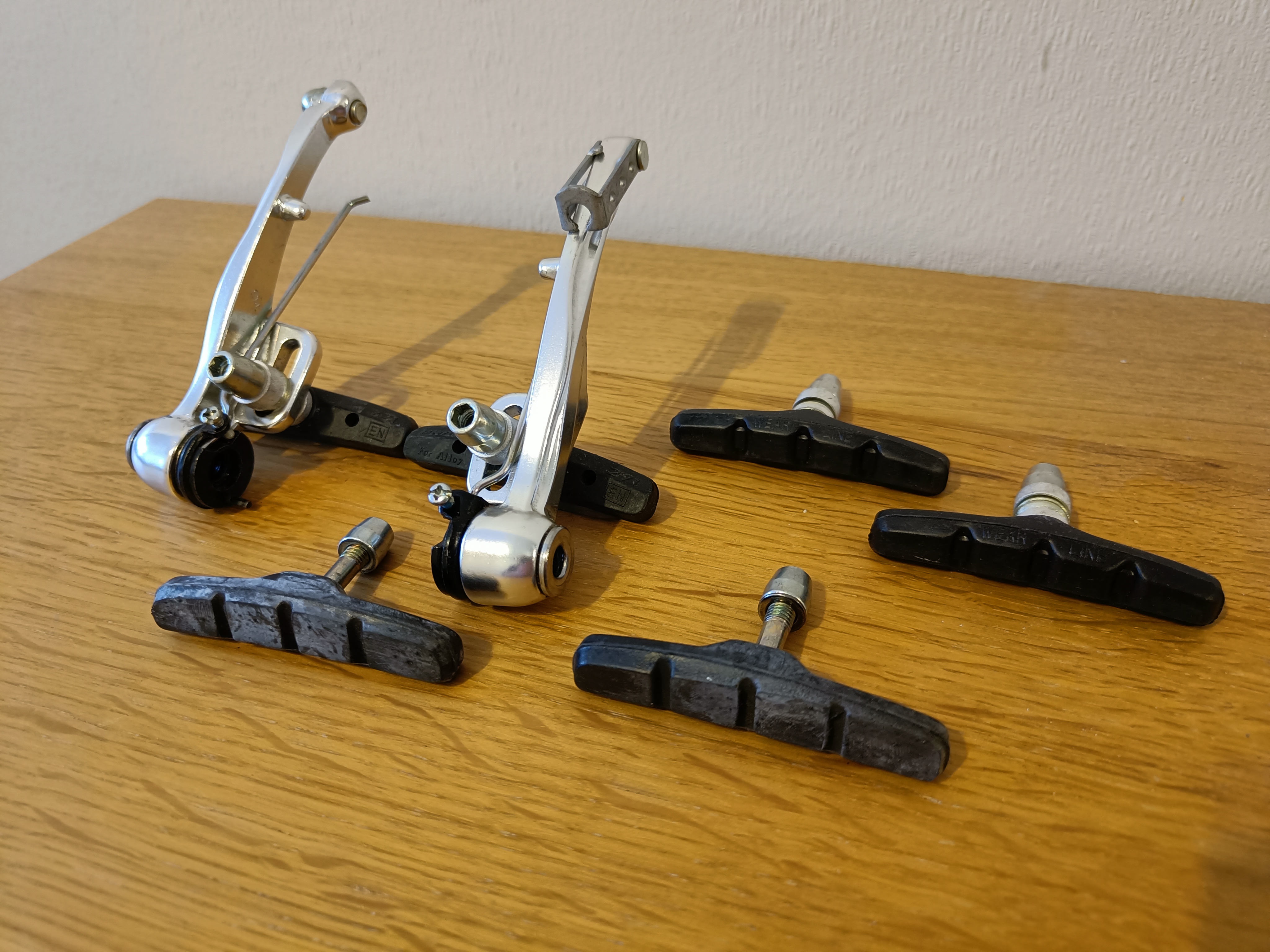 Myynnissä V-jarrulänget ja kolmet jarrupalat joista ainakin yhdet on täysin iskemättömät.