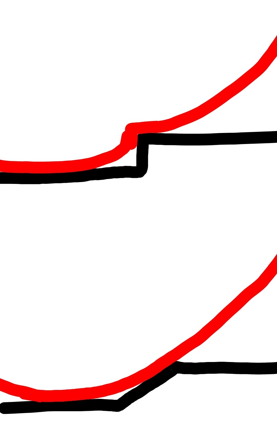 Tajusin muuten, että terävä kantti on mukavampi kuin ihan samankorkuinen viistetty, koska terävä kantti uppoaa kumiin ja siitä rullaa siististi yli. Loiva kantti taas iskee kumiin niin suurelta alalta, että se ei uppoa juuri yhtään.