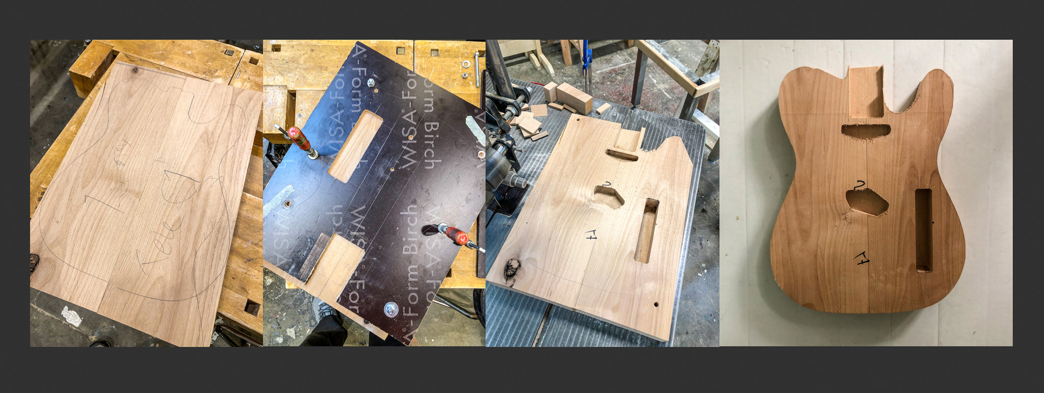 Tuolla samalla menetelmällähän voisi tehdä kitaraan kaularaudan. Kaularaudan ura pitäisi vaan jyrsiä keskeltä syvemmäksi, asettaa kaularauta uraan ja liimata päälle keskeltä paksumpi puusoiro, joka pitäisi raudan keskeltä syvemmällä urassa.