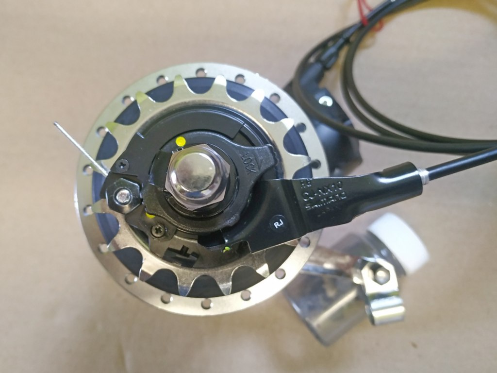 Katsoin Alfine 8 -navasta, joka oli pystysuuntaisissa dropouteissa, että oikealle kuuluu sininen prikka ja vasemmalle vihreä.