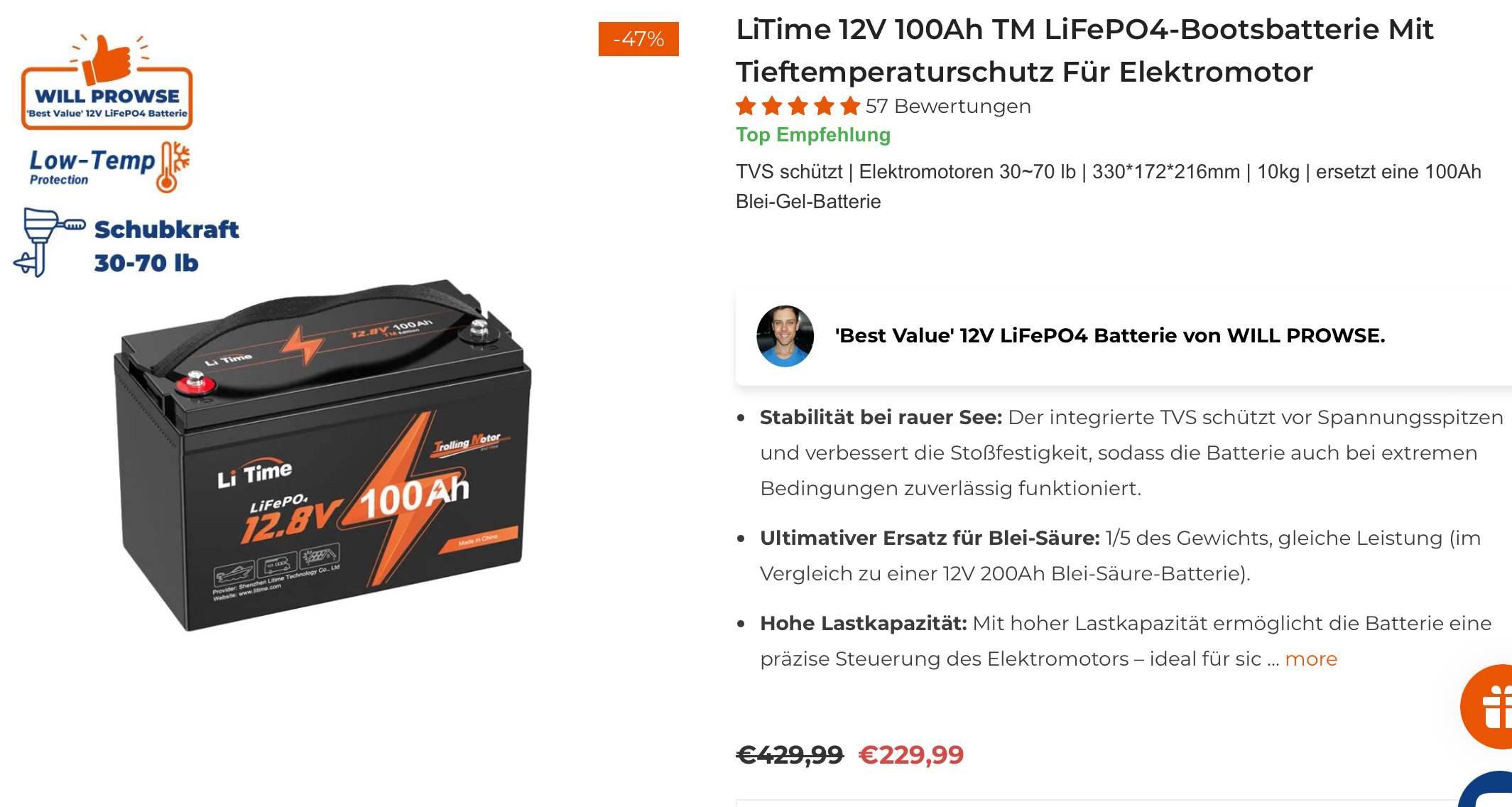 Tuollaisen tilasin äsken: https://www.litime.de/products/12v-100a ... rschutz-tm