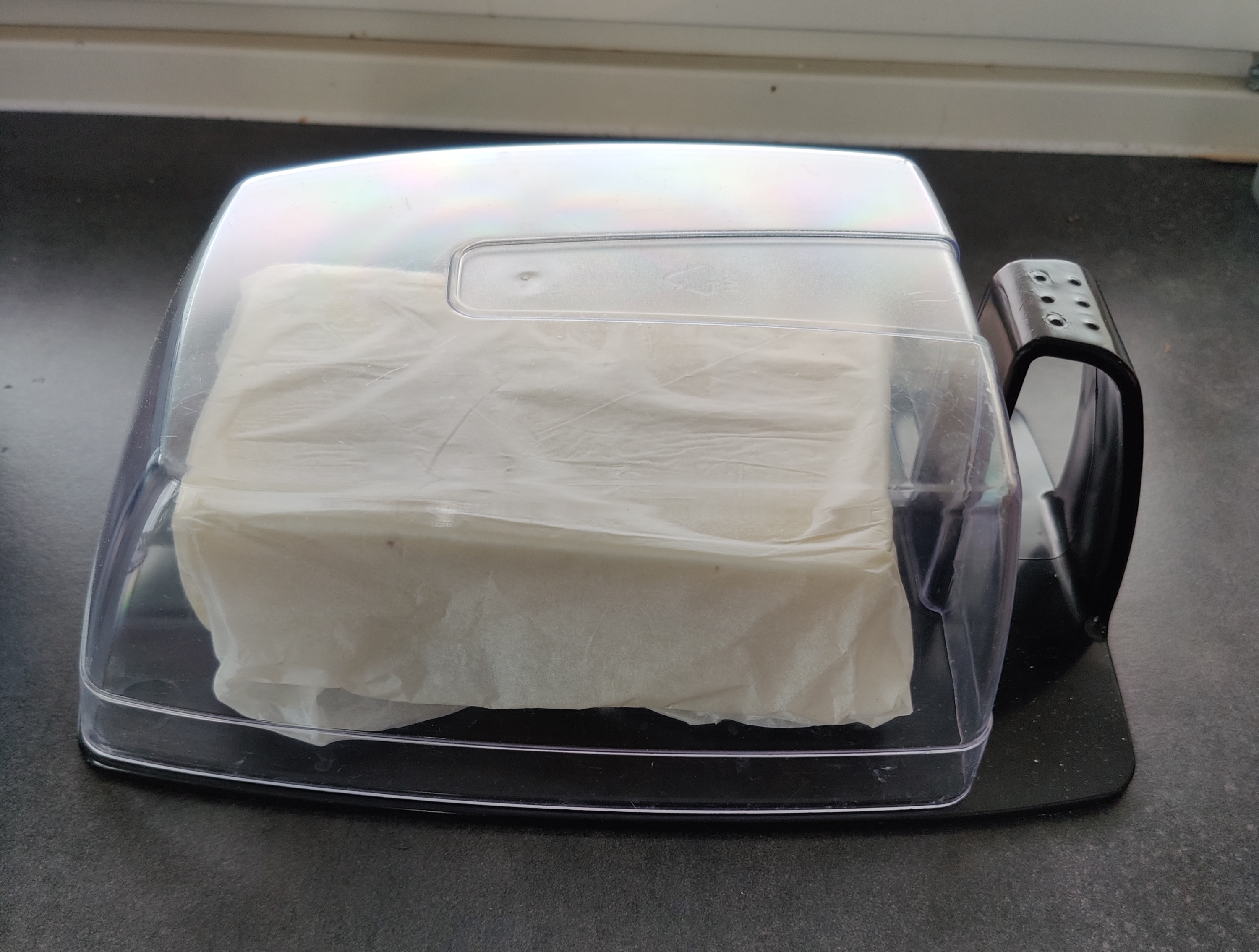 Vaimo löysi vinkin, että juusto poistetaan muovipakkauksesta, kääritään voipaperiin sekä laitetaan tiivistämättömän kuvun alle.