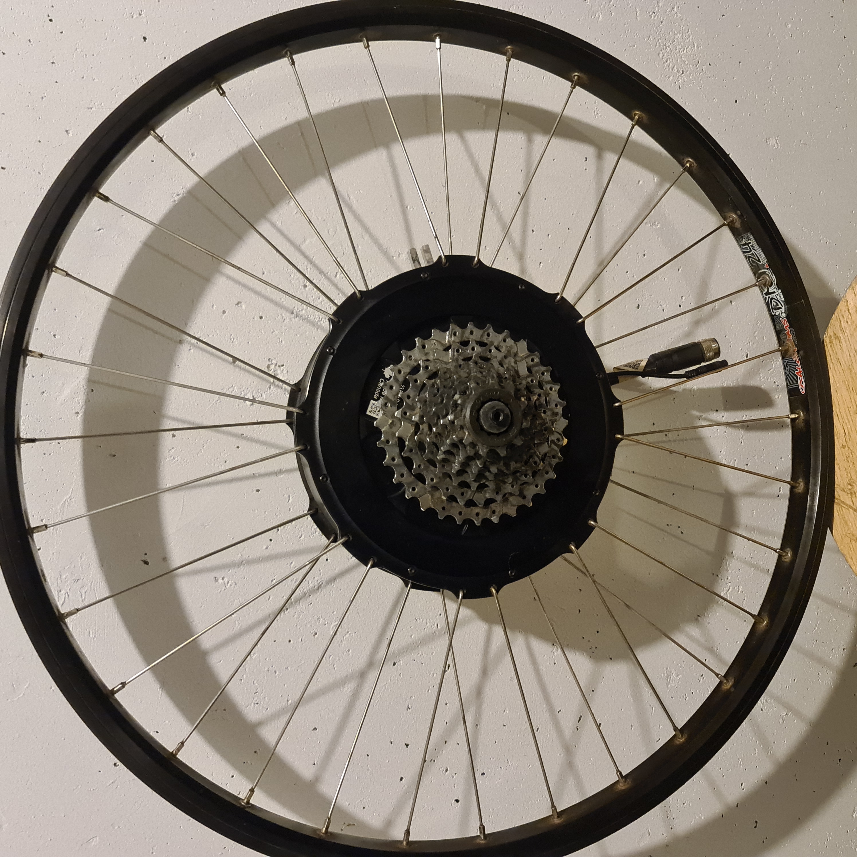 Grin All-Axle Slw suora napamoottori 26 tuuman vanteella, 8-lehtinen pakka ja Shimano vapaaratas jossa sisäänrakennettu poljinsensori. Ajettu 6500 km. Sopii suoraan 135mm pikalinkkuhaarukkaan tai 12mm läpiakselille. Moottori jäi tarpeettomaksi kun vaihdoin saman merkkiseen Sramin vapaarattaalla ja 12 vaihteen pakalla. Uuden hinta Kanadassa 745$ +alv ja tullaus. Hinta Oulussa 300€.