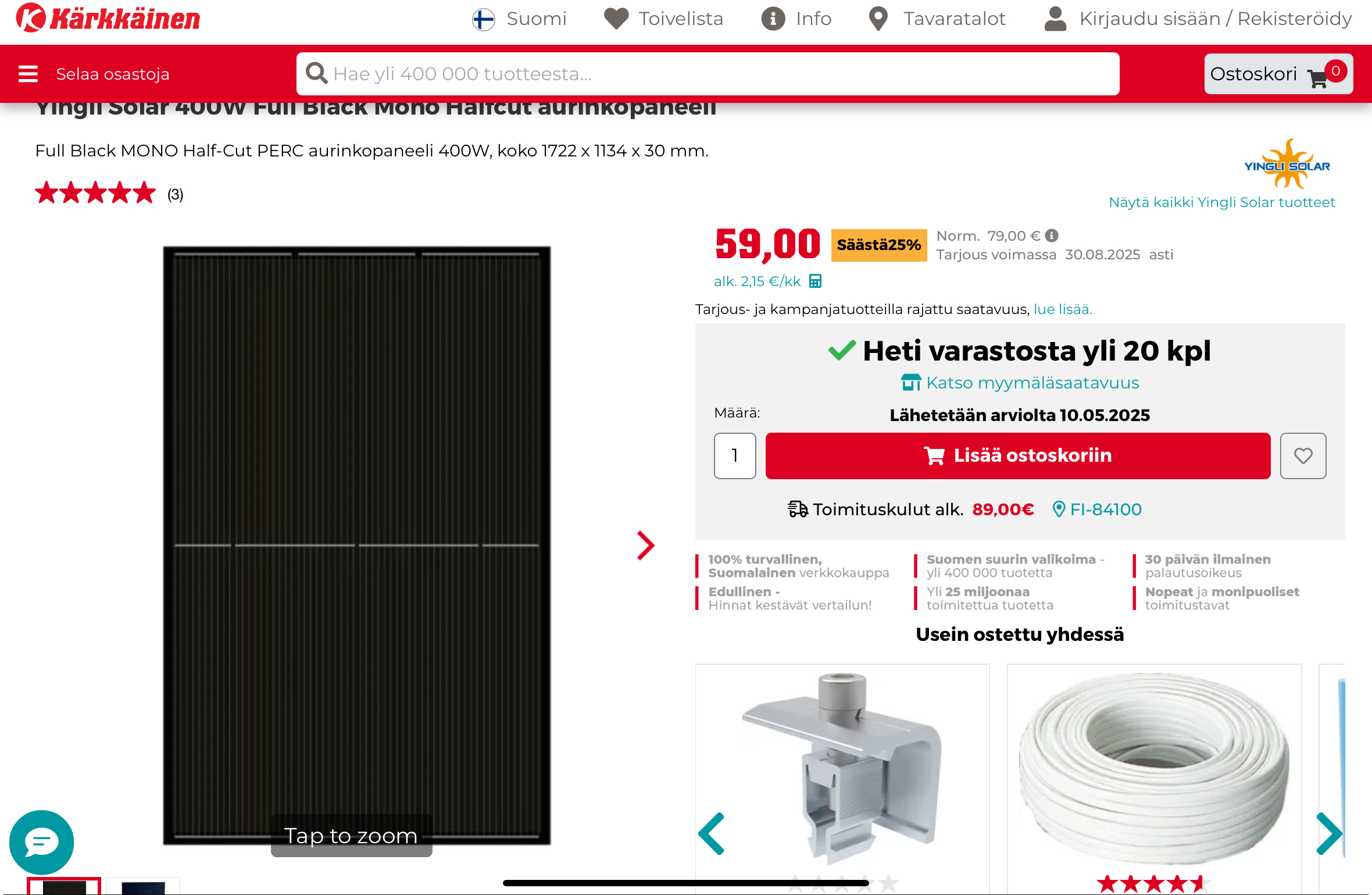 Pitäis rakentaa aurinko(voima)katettu kolmi/nelipyörä, kun 400w paneelin saa jo 60€. Kokokin ois sopiva 1722 x 1134 x 30 mm. Mutta eihän sitä nykyään saa aikaiseksi mitään…