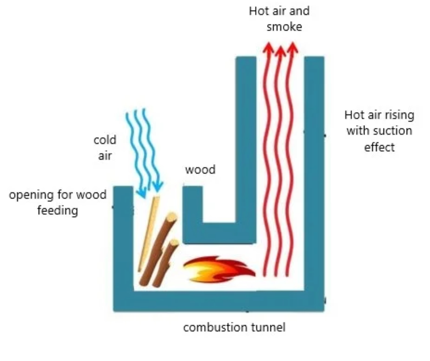 Onko teillä kokemusta tämäntyyppisestä puupolttimesta? Rocket stove -nimeä käytetään englannin kielessä. Rakenteessa on idea polttaa palokaasut kunnolla korkeassa pystyputkessa. Vähemmän energiaa hukkaan ja vähemmän savua.