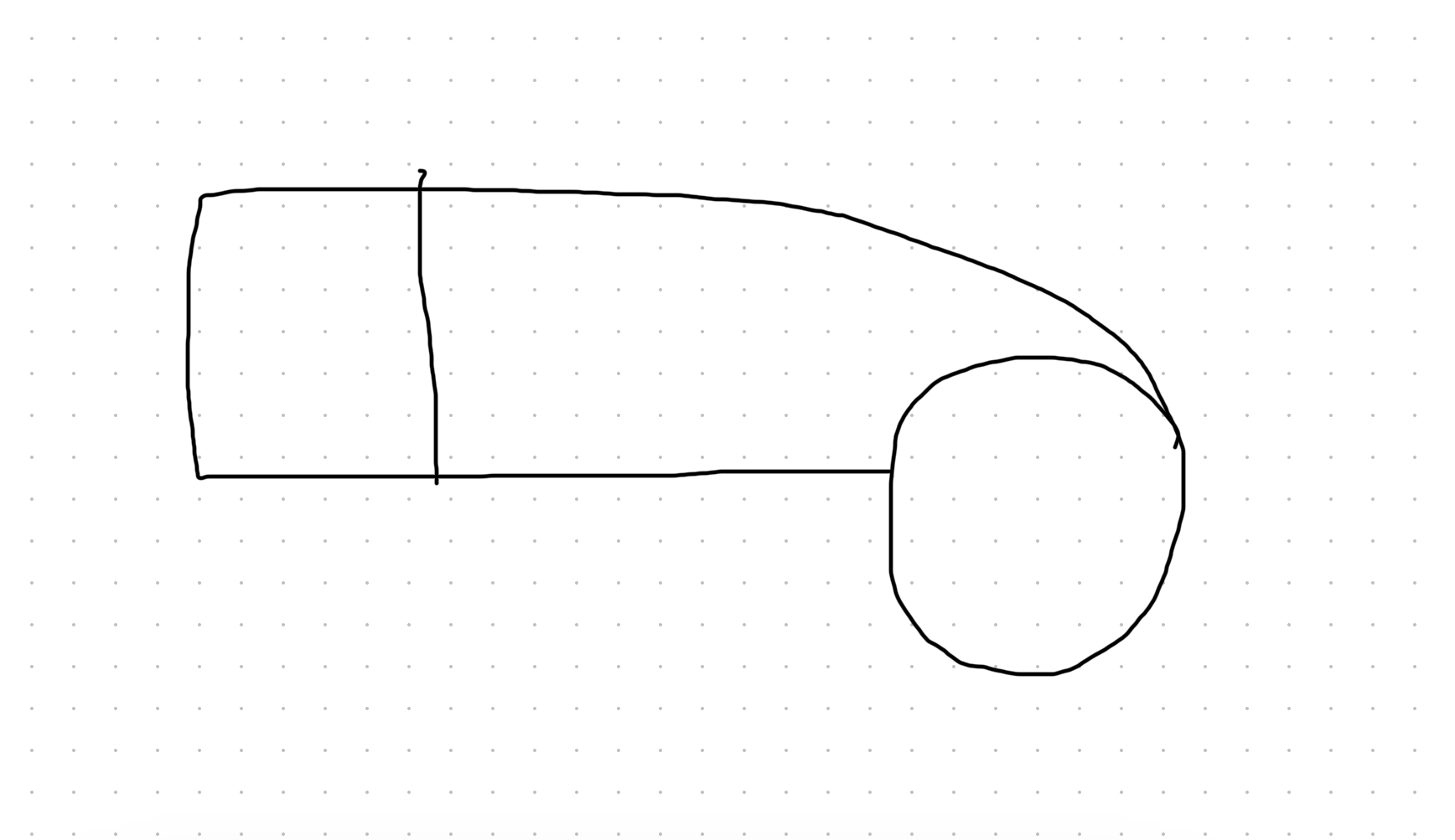Kun/jos teen seuraavan kehitysmallin, niin se on edelleen J-malli ja näyttää tältä ylhäältä päin. Eli piippu on pyöreä ja sivussa, jolloin sinne muodostuu pyörre pakokaasuille. Runko 100x100x3 ja piippu 100x3.