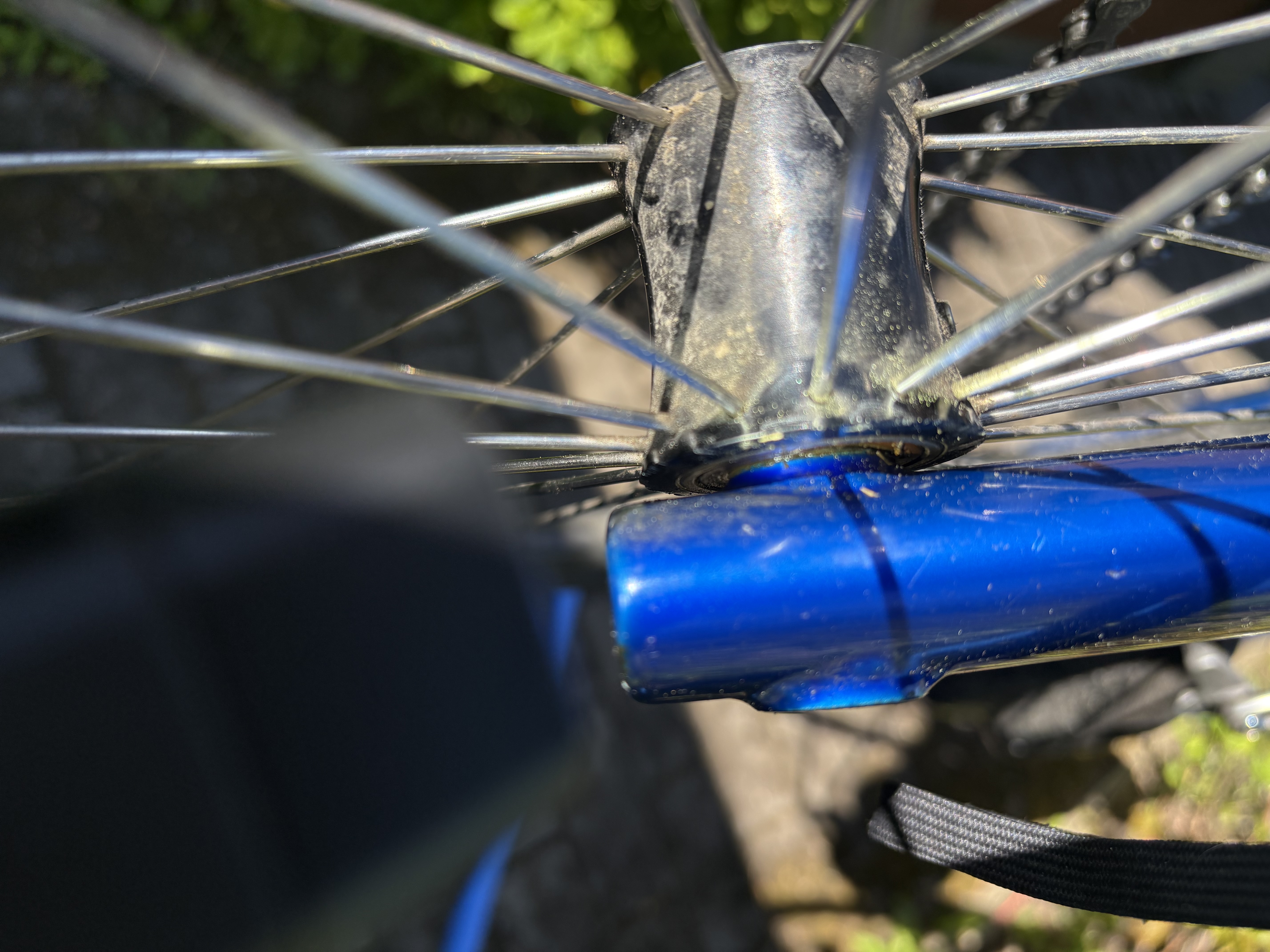 Koetappas sellaista kikkaa että jäähdytät kylmäsprayllä sitä akselia sieltä pultin reiästä. Siis irtoita pultti, suihkuta kylmää sinne pultin reikään tovi, laita pikaisesti pultti takaisin hieman löysälle ja lyö pultin kantaan. Pyörän kannattaisi olla kyljellään pultin kanta ylös päin, jolloin vetovoiman auttaa aukeamista.