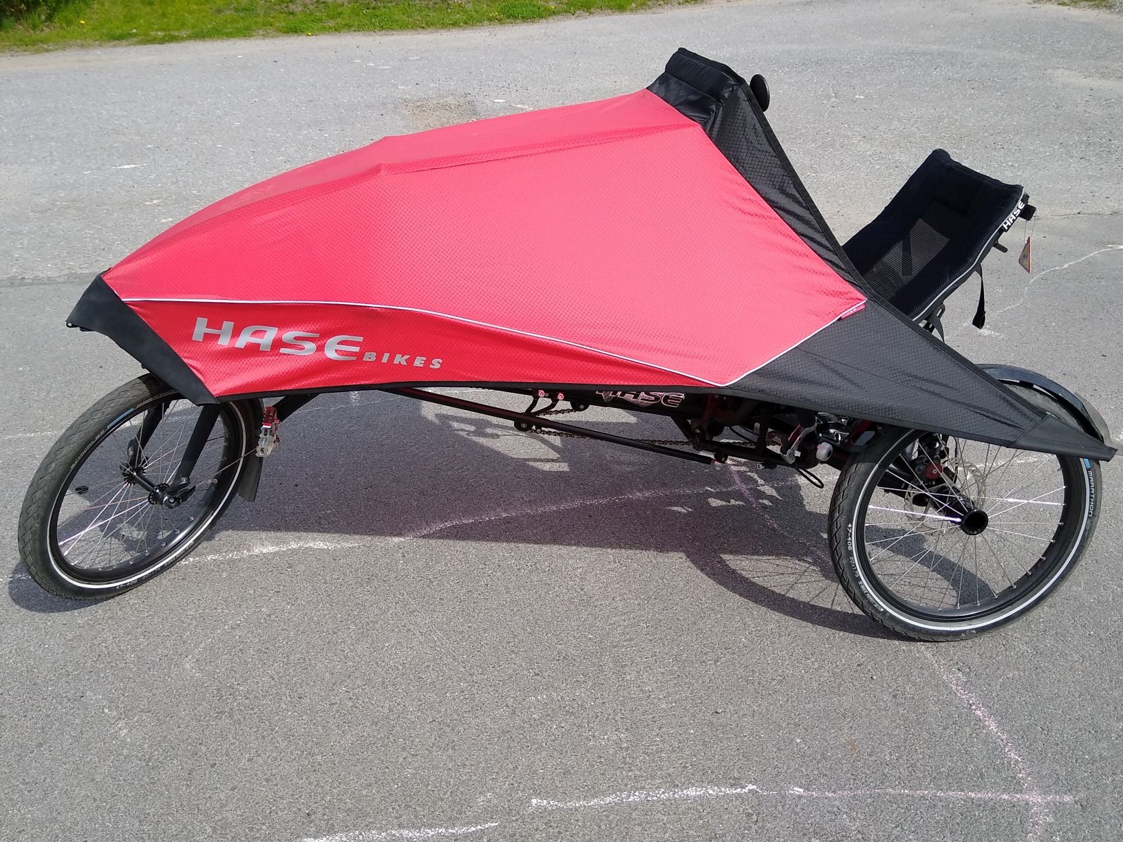 Trikessä on tasauspyörästö ja 8-vaihteinen Shimanon napavaihde. Mukana tulee myös Hasen oma etukate. Pyörä on Kokkolassa,