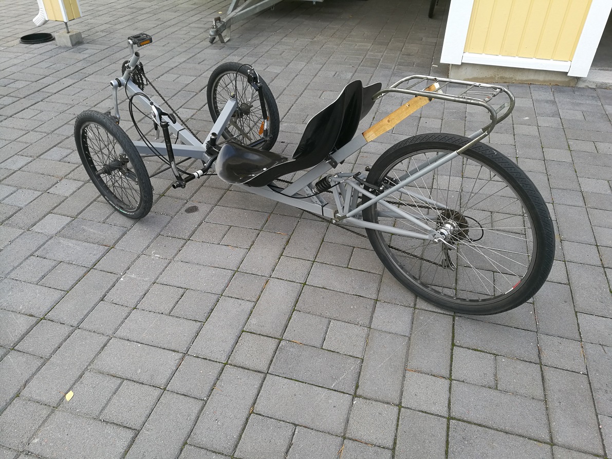 Vaikka tässä "nojapyörän rakentaminen"-osiossa idea olisi jakaa projektin etenemistä vaiheissa, en halunnut laittaa itselleni paineita ja nojapyöräfoorumin lukemisen ohessa kokosin pyörää kaikessa rauhassa :D Nyt kun ekat 4-5km testiajoja on takana, voin jo helpottuneena jakaa muutaman kuvan. Tekemistä on vielä paljon, mutta ainakin trike liikkuu ja tuntuu suht miellyttävältä ajaa.