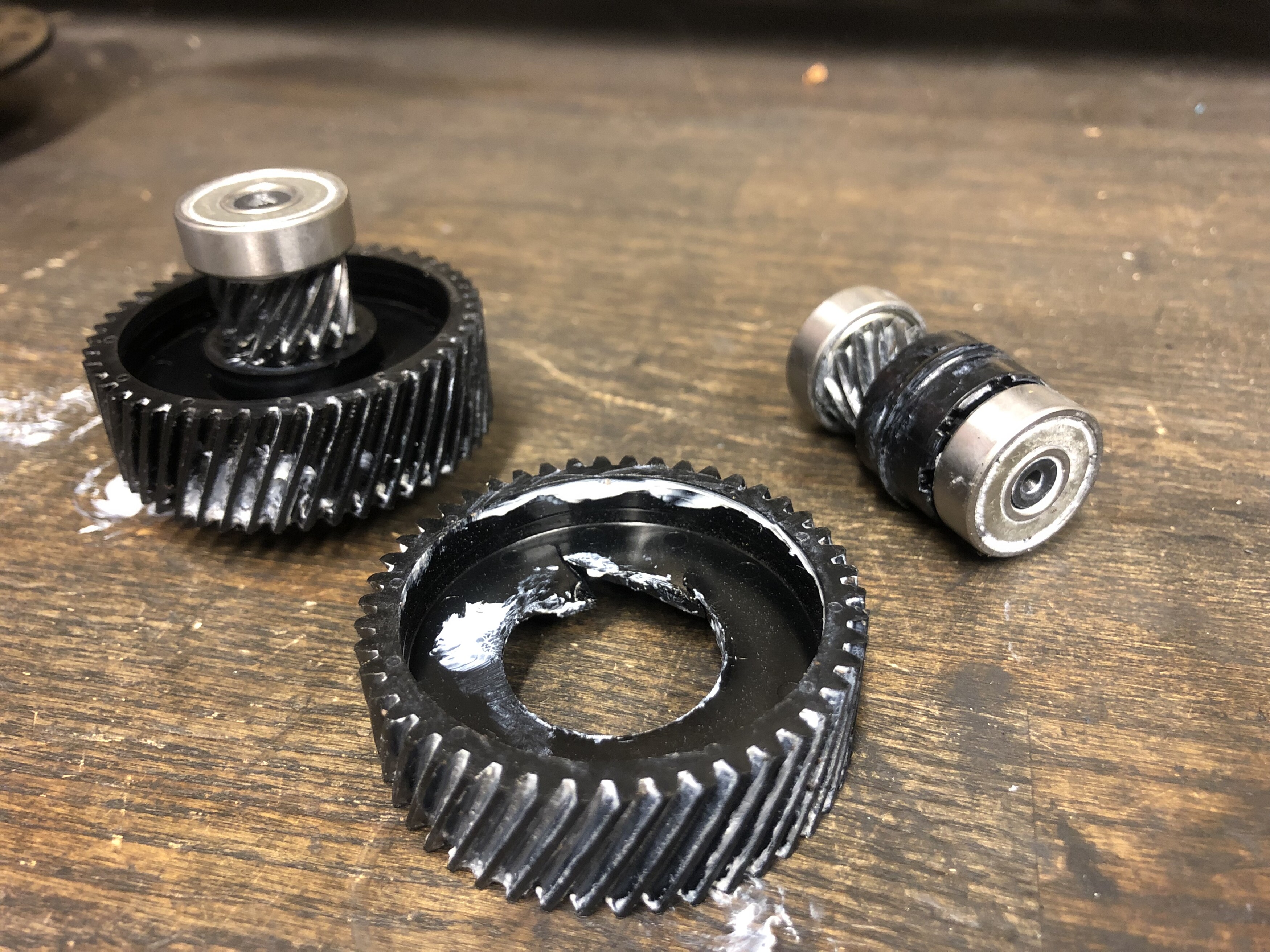 Tuo ratas kun pettää ensin sen rungosta. Isompi muovinen ratas on ilmeisesti valettu akselin ympärillä olevan metallisen rattaan ympärille. Valu on tuossa keskellä niin ohut että se murtuu herkästi.