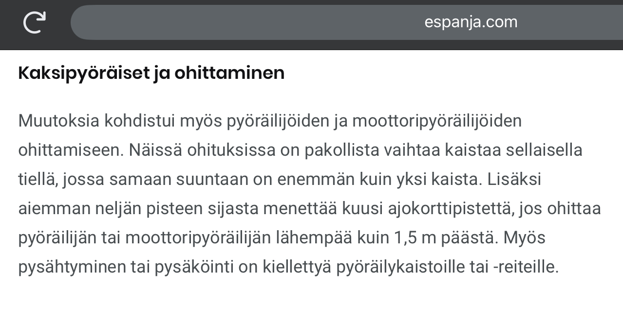 Mutta Espanjassa tulee 500€ sakko jos et pysähdy suojatien eteen, mikäli joku edes aikoo tulla suojatien yli.