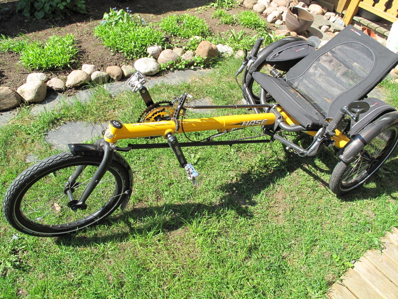 Nojapyörien Mercedes. Ajettu vain alle 400 km. Erinomaisessa kunnossa, kuin uusi. Varusteista voisi mainita tasauspyörästön, lukkopolkimet, vaihteita 3x9 eli 27 kpl, Schwalbe Big Applen renkaat. Kaksi eri istuinta, normaalille ja leveämmelle pepulle. Rungon väri keltainen. Laitan kuvia kun kerkiän. Nojakki on Lohjalla. Hintapyyntö 2.450€.