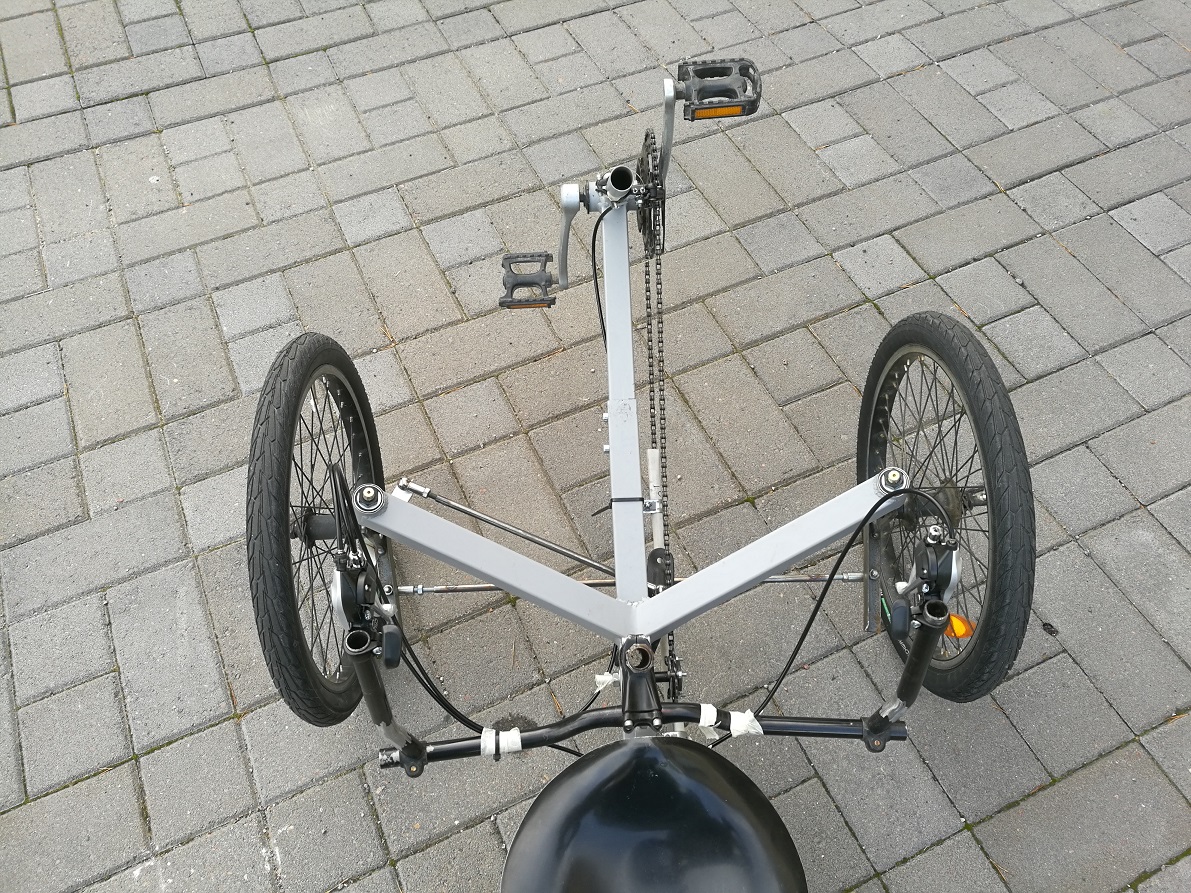 Kävin hetken hääräämässä triken ympärillä. Vaihdoin takavaihtajan vaijerinkuoren pidempään, edeltävä kun oli kahdesta palasta. Ohjaustankoa liikutellessa tuli mieleen muutama asia, ohjausnivelten välys, ackerman-kulmat ja ketjun suojaputki.