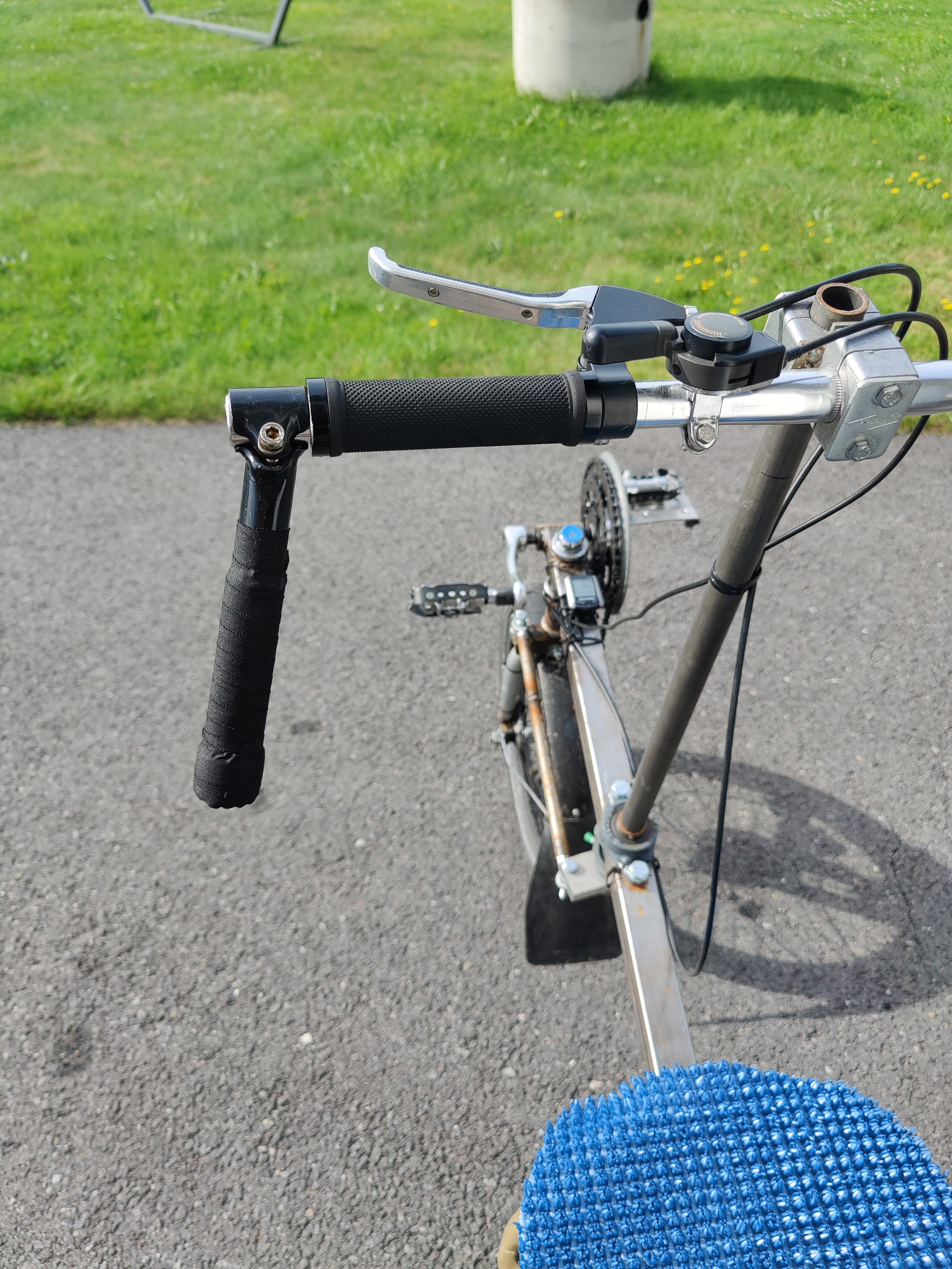 Tykkään muuten hallinnan puolesta tuosta suorasta ohjaustangosta, mutta olkapää väsyy/kipeytyy, jos kättä pitää muutaman tunnin yläviistoon.